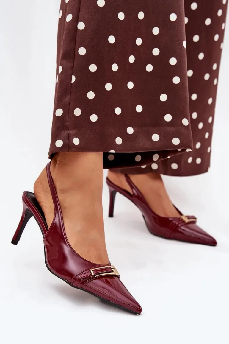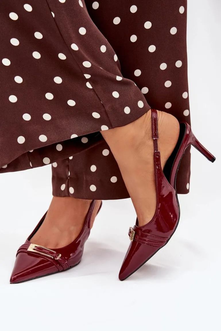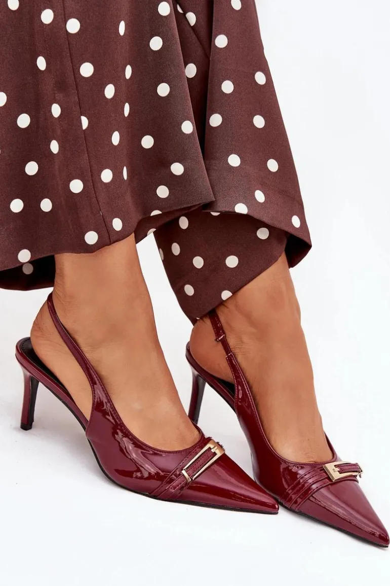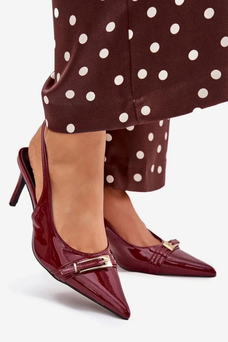Stylowe i eleganckie czółenka z eko skóry, osadzone na obcasie w formie szpilki, to połączenie klasyki z nowoczesnym akcentem. Z przodu buta znajduje się paseczek ozdobiony złotą klamrą, który dodaje im wyjątkowego szyku. Szpiczaste noski optycznie wysmuklają nogi, nadając sylwetce elegancki wygląd. Idealne na wieczorne wyjścia, specjalne okazje lub eleganckie spotkania. Przy wyborze rozmiaru prosimy kierować się tabelą rozmiarów