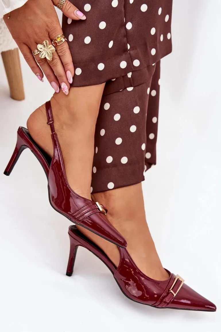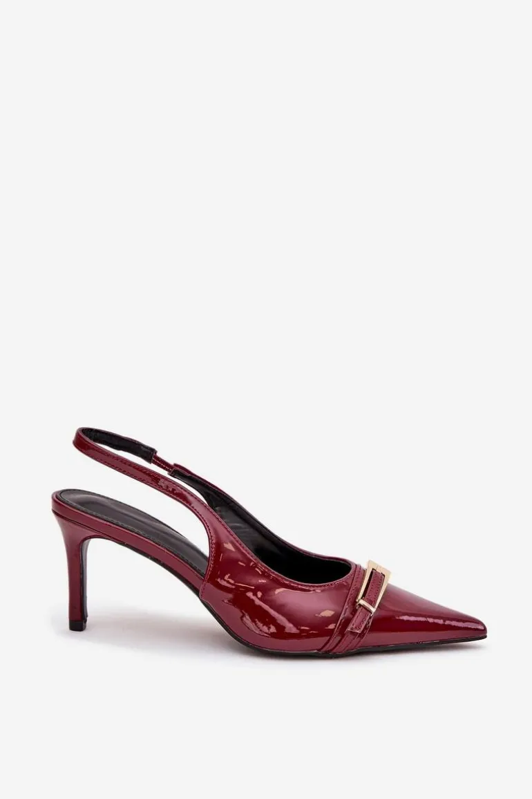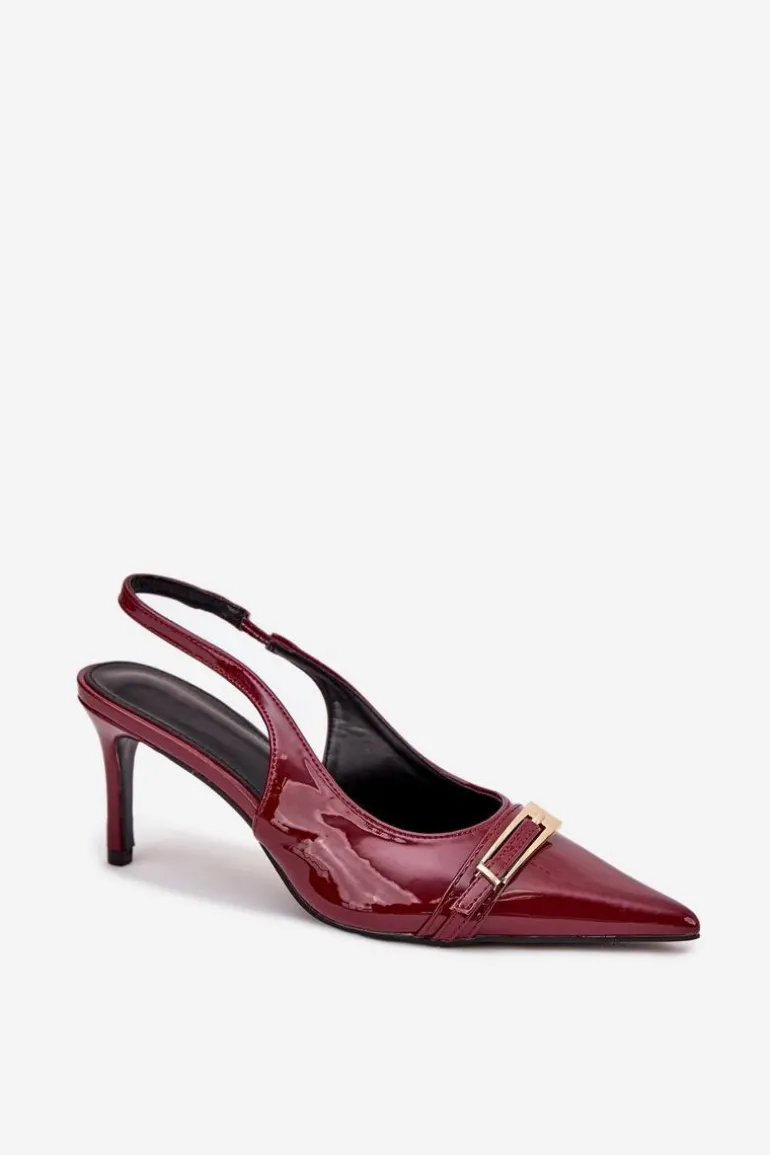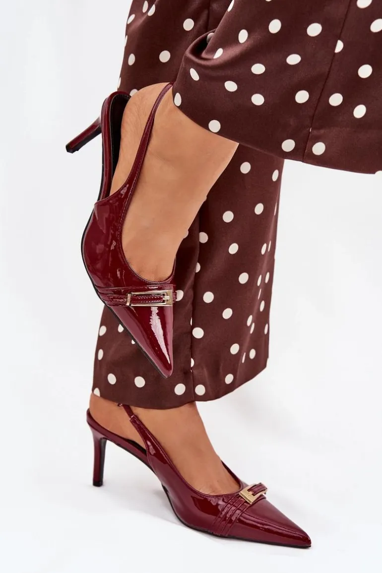 Stylowe i eleganckie czółenka z eko skóry, osadzone na obcasie w formie szpilki, to połączenie klasyki z nowoczesnym akcentem. Z przodu buta znajduje się paseczek ozdobiony złotą klamrą, który dodaje im wyjątkowego szyku. Szpiczaste noski optycznie wysmuklają nogi, nadając sylwetce elegancki wygląd. Idealne na wieczorne wyjścia, specjalne okazje lub eleganckie spotkania. Przy wyborze rozmiaru prosimy kierować się tabelą rozmiarów