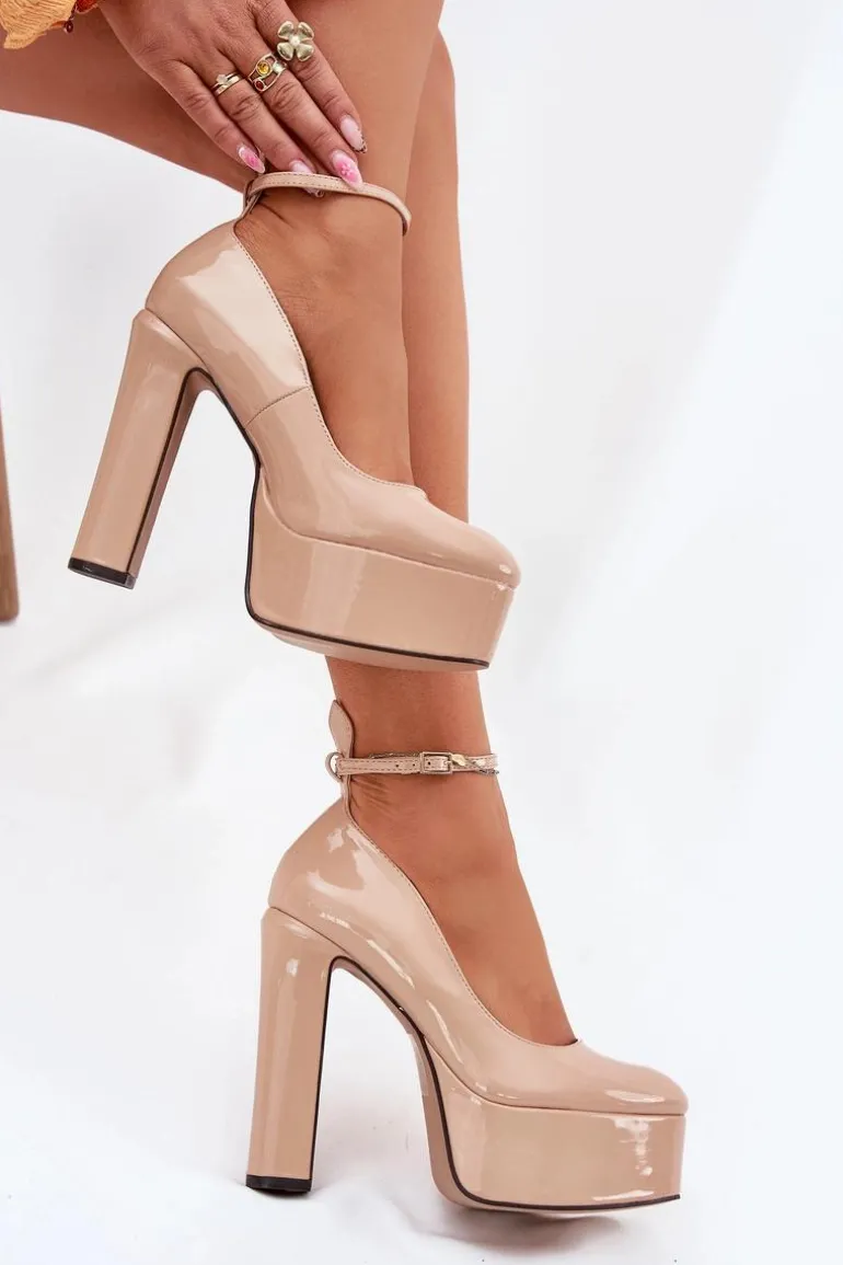 Czółenka z eko skóry to doskonałą propozycja na specjalne okazje. Model wyróżnia się wysokim obcasem typu słupek oraz platformą, które zapewniają wygodę i stabilność. Noski w kształcie migdała dodają im subtelności i kobiecego uroku. Dodatkowo czółenka posiadają zdejmowany paseczek zapinany na sprzączkę, co pozwala na łatwe dopasowanie i personalizację obuwia. Przy wyborze rozmiaru prosimy kierować się tabelą rozmiarów