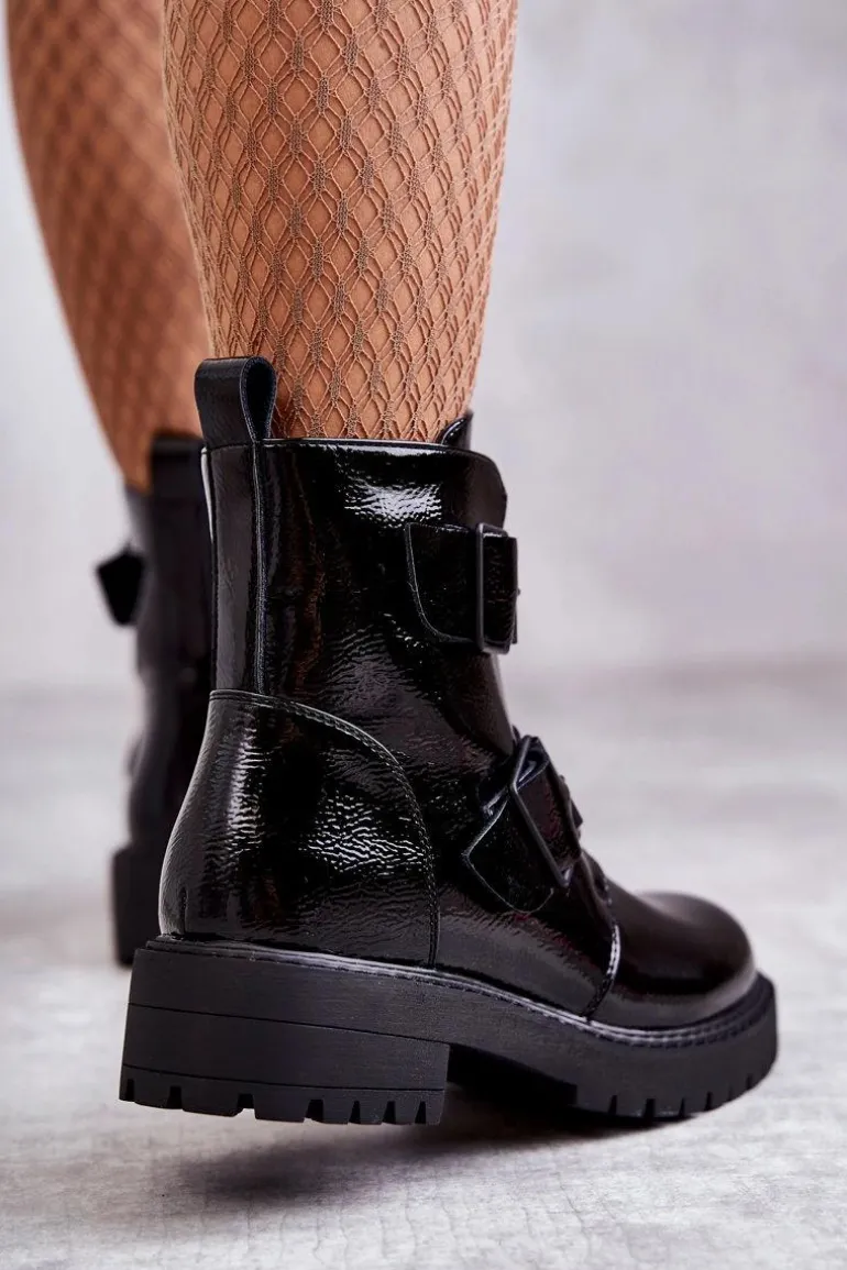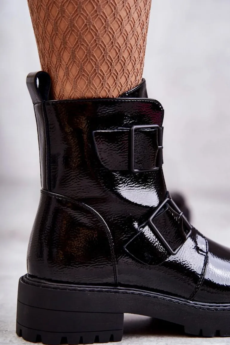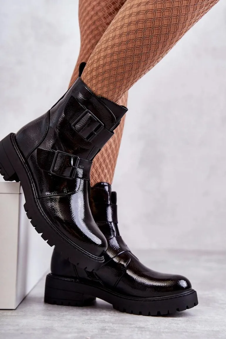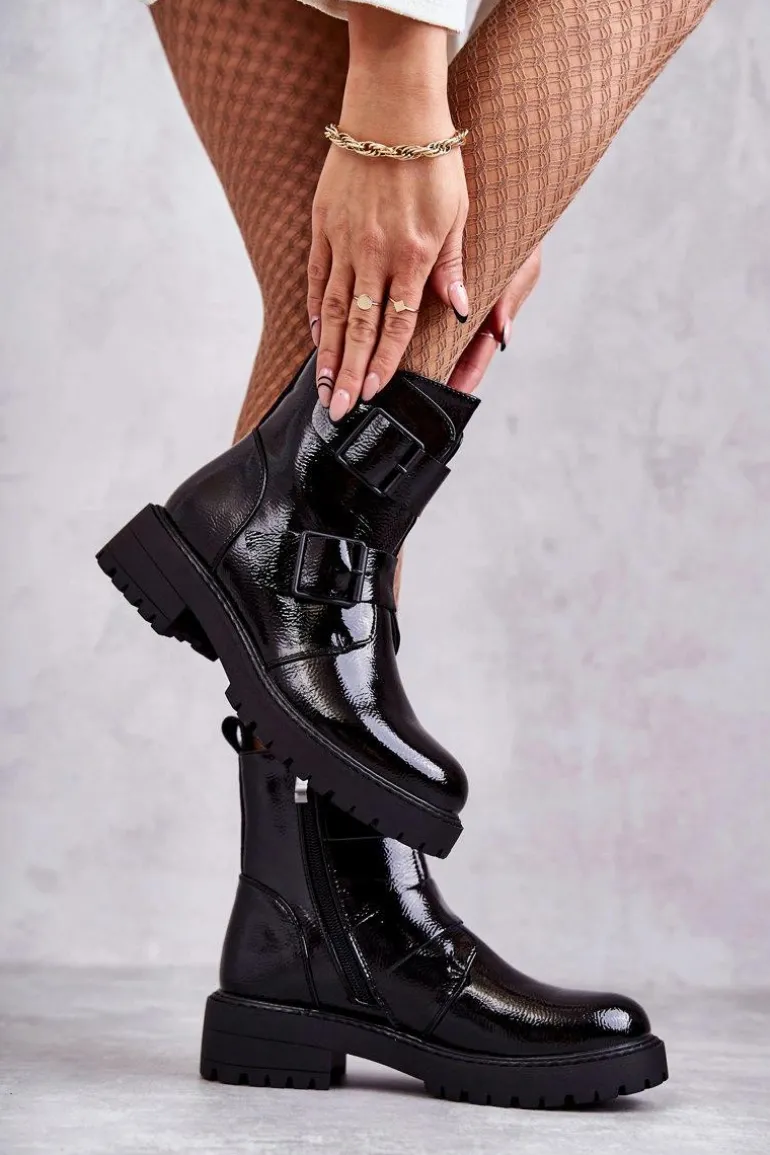 Lakierowane Damskie Botki Na Suwak Czarne Gritta