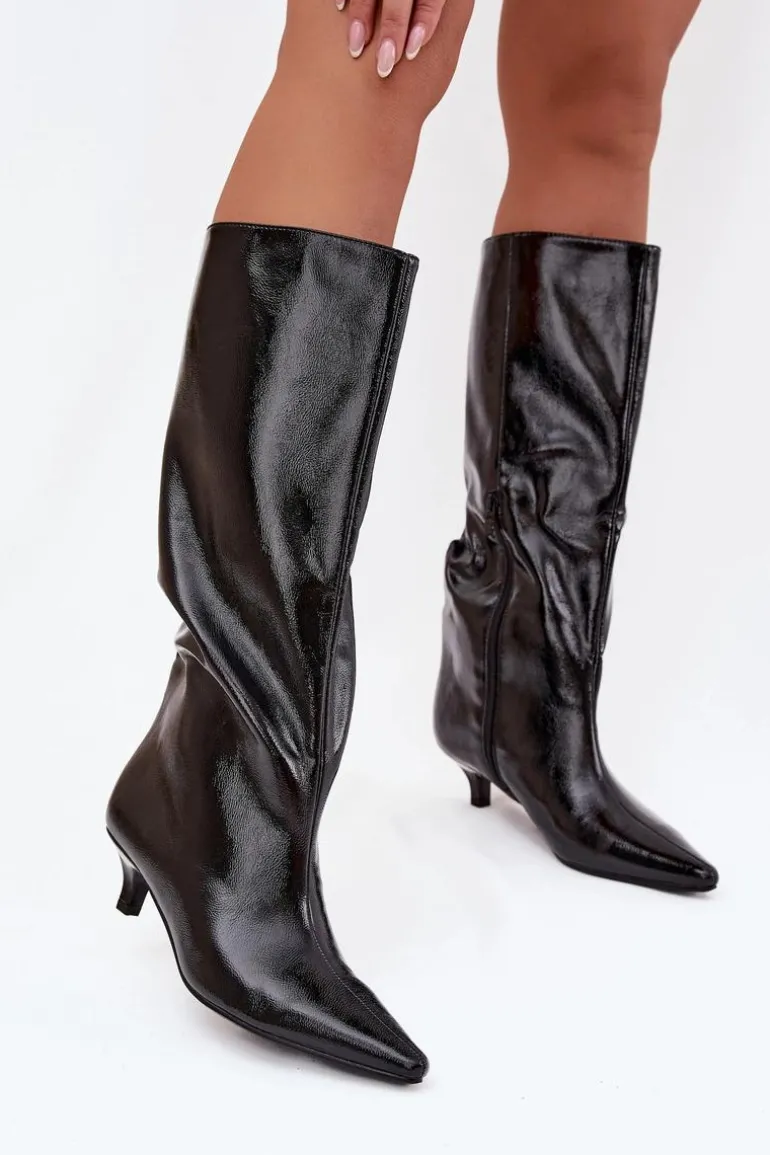 Kozaki damskie wykonane z eko skóry to elegancka propozycja na sezon jesienno-zimowy. Model wsuwany z dodatkowym suwakiem na dole cholewki ułatwia zakładanie. Wnętrze ocieplane kocem obuwniczym zapewnia komfort i ciepło podczas chłodniejszych dni, dzięki czemu buty świetnie sprawdzą się w codziennym użytkowaniu. Szpiczaste noski dodają całości smukłego, kobiecego charakteru, a niski obcas zapewnia wygodę i stabilność przy każdym kroku. To uniwersalne kozaki, które znakomicie uzupełnią zarówno casualowe stylizacje z jeansami, jak i eleganckie zestawy z sukienką czy spódnicą. Przy wyborze rozmiaru prosimy kierować tabelą rozmiarów.
