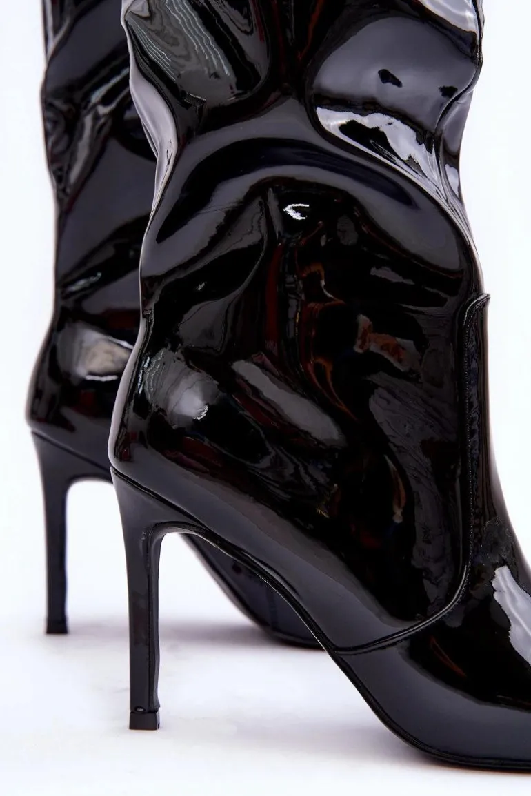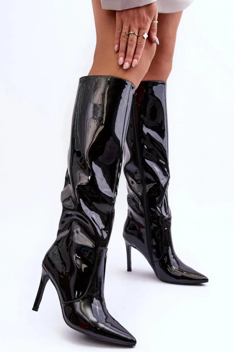 Kozaki damskie zostały wykonane z eko skóry. Posiadają na całej długości suwak ułatwiający zakładanie obuwia. Buty osadzone na obcasie w postaci szpilki. Posiadają ocieplenie w postaci koca obuwniczego. Noski w szpic optycznie wysmuklą nogi. Zapiętek w tych kozakach jest usztywniany. Model ten powinien znaleźć się w Twojej szafie! Przy wyborze rozmiaru prosimy sugerować się tabelą rozmiarów.