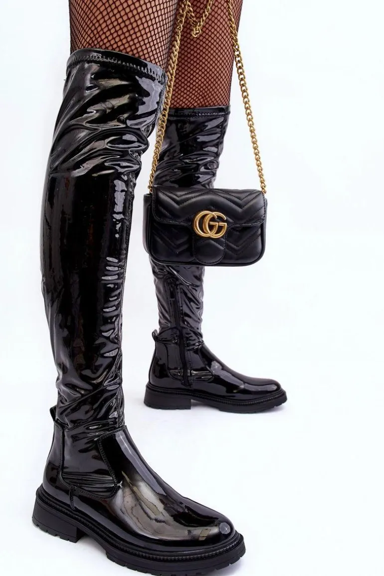 Kozaki damskie z cholewką za kolano. Osadzone na płaskim, stabilnym obcasie. Model z zaokrąglonym noskiem. Wsuwane z dodatkowym suwakiem na dole cholewki. Wewnątrz na wysokości stopy ocieplenie w postaci koca obuwniczego. Przy wyborze rozmiaru prosimy sugerować się tabelą rozmiarów.