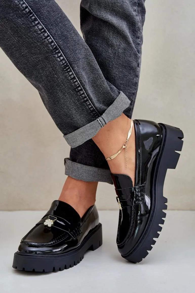 Mokasyny damskie z eko skóry to komfortowy wybór, który łączy elegancję z oryginalnym akcentem. Zaokrąglone noski zapewniają wygodę, a model wyróżnia się uroczą przypinką w kształcie misia na pasku z przodu, dodając zabawnego i unikalnego charakteru. To świetna propozycja na casualowe stylizacje, które potrzebują odrobiny delikatności i świeżości. Przy wyborze rozmiaru prosimy sugerować się tabelą rozmiarów.