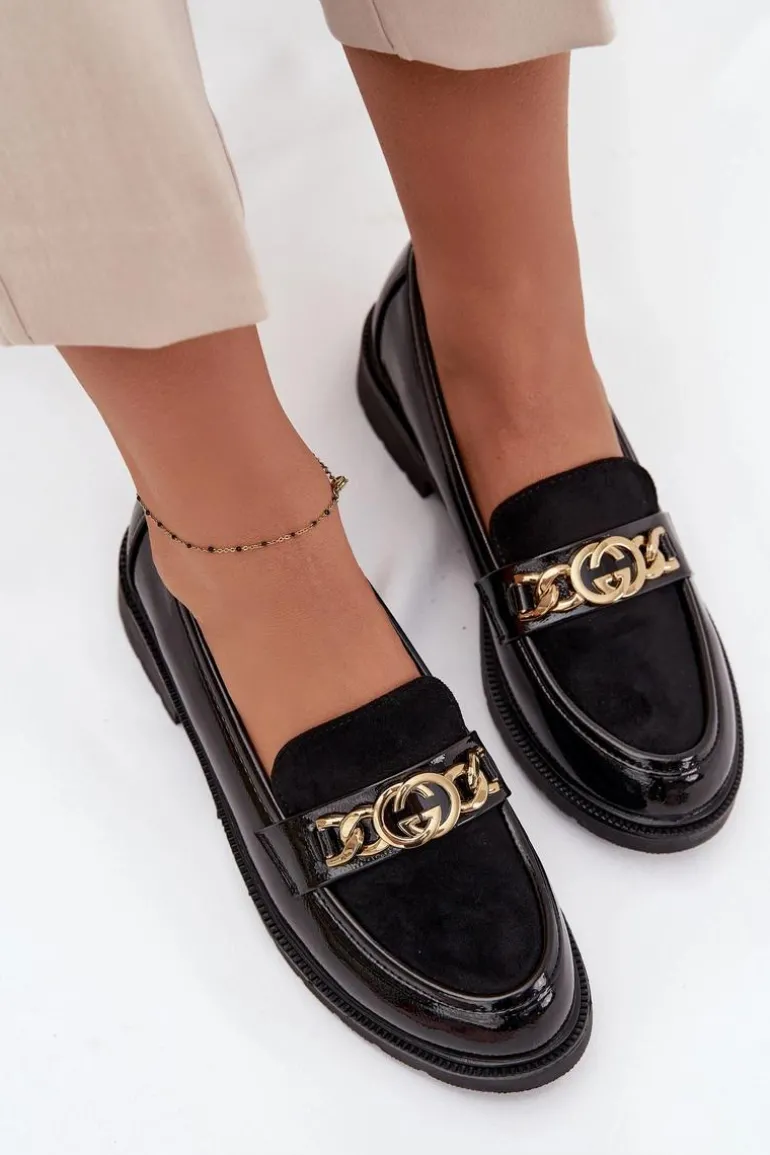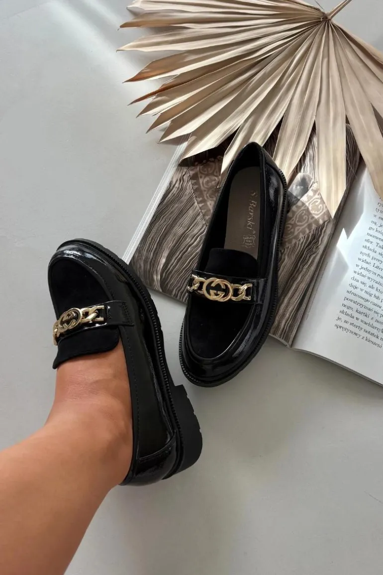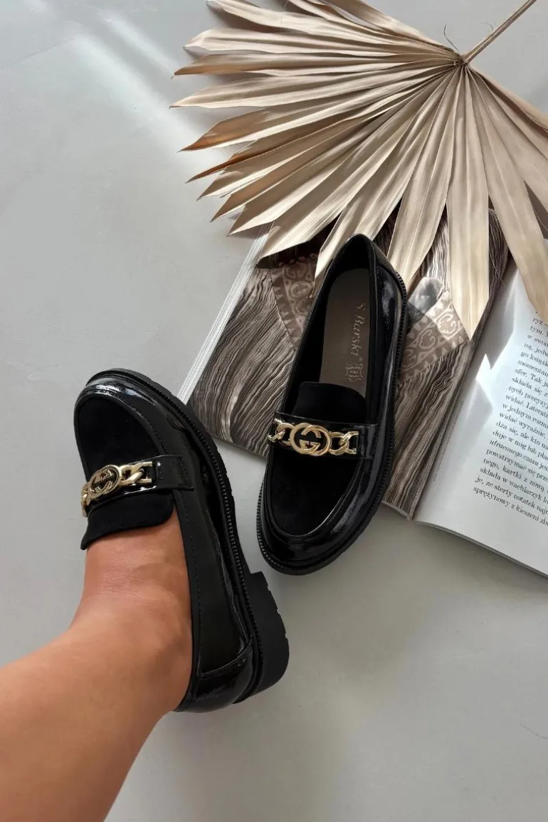 Mokasyny damskie marki S. Barski wykonane z połączenia eko skóry i eko zamszu to propozycja dla kobiet ceniących elegancję w wygodnym wydaniu. Klasyczny fason urozmaicony został paskiem z dekoracyjną, złotą ozdobą. Dzięki miękkiej, skórzanej wkładce zapewniają komfort noszenia przez cały dzień.