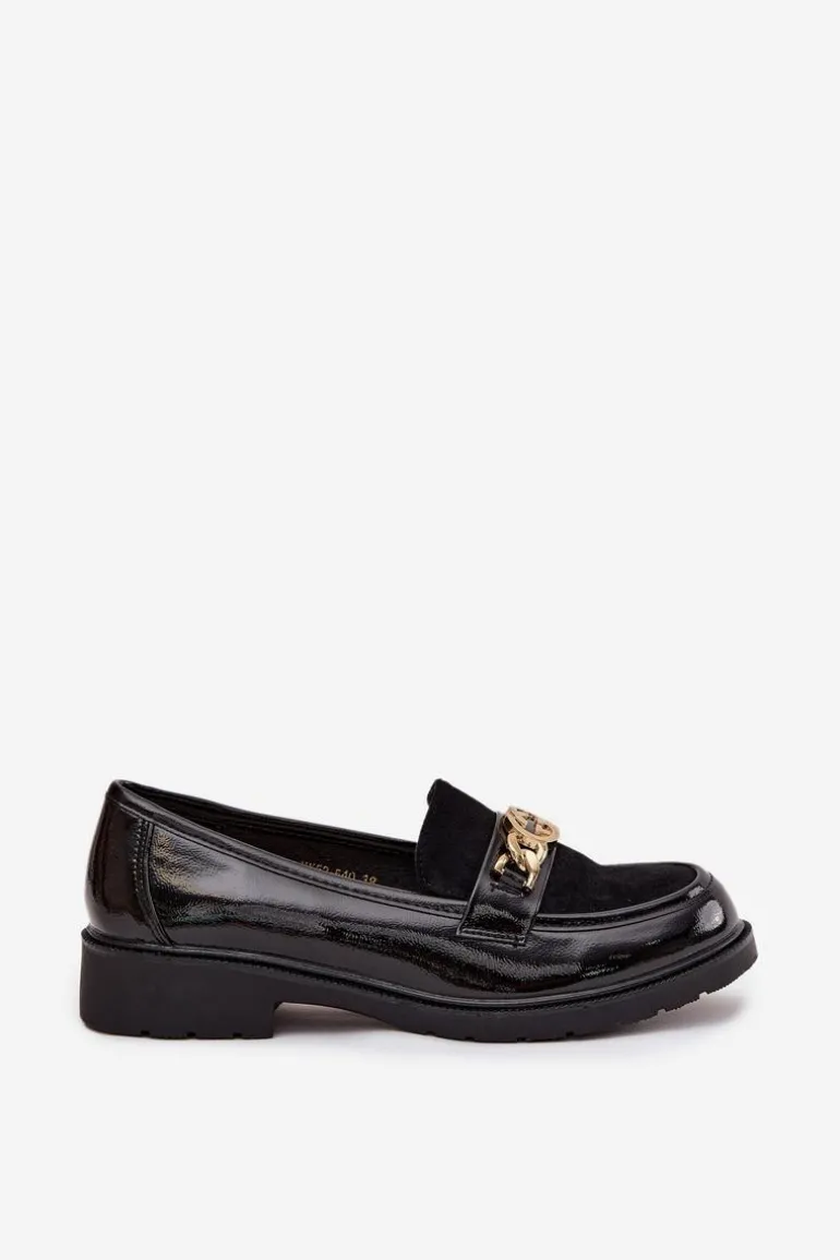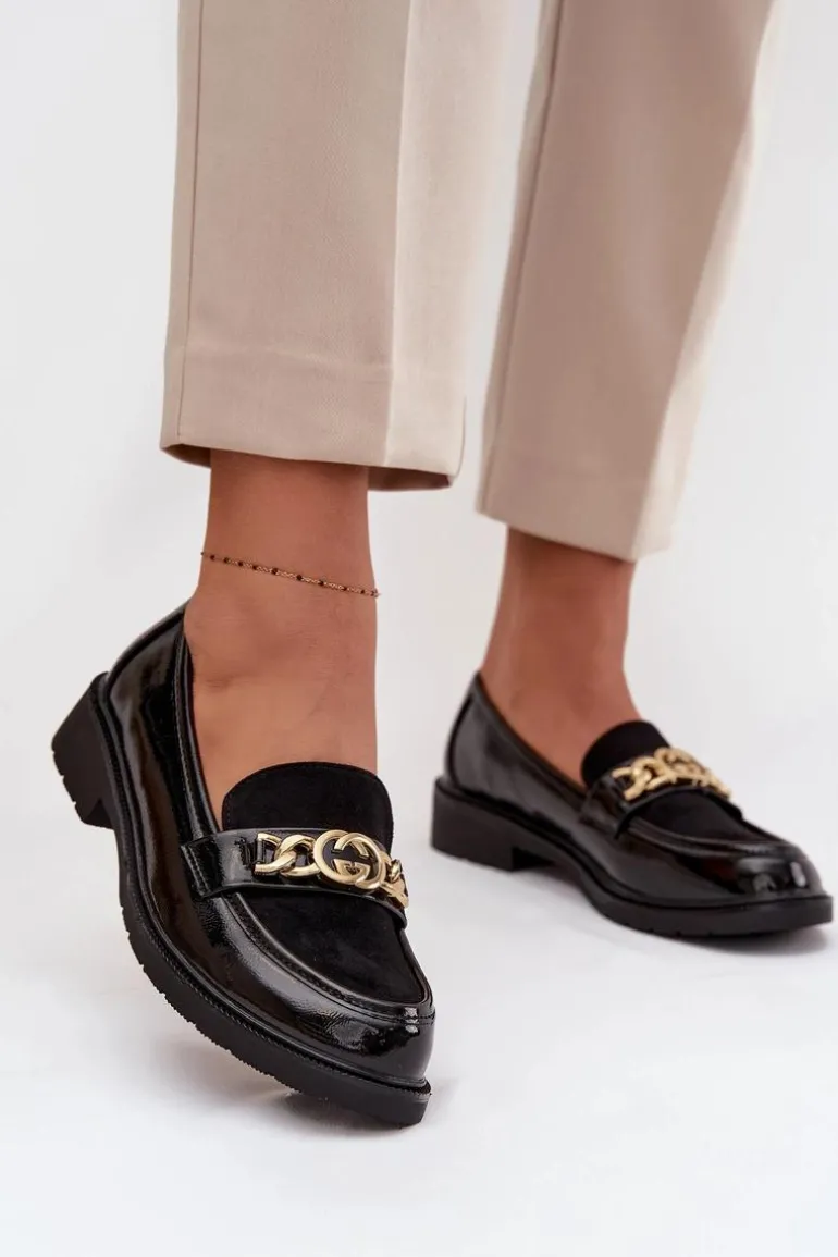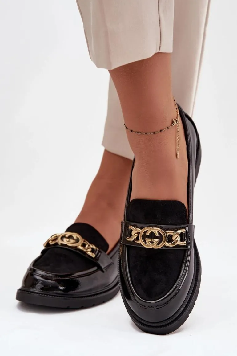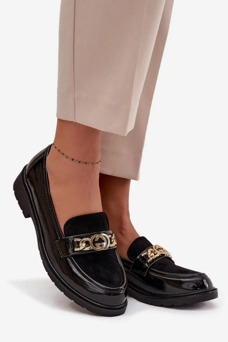 Mokasyny damskie marki S. Barski wykonane z połączenia eko skóry i eko zamszu to propozycja dla kobiet ceniących elegancję w wygodnym wydaniu. Klasyczny fason urozmaicony został paskiem z dekoracyjną, złotą ozdobą. Dzięki miękkiej, skórzanej wkładce zapewniają komfort noszenia przez cały dzień.