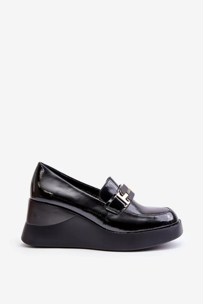 Mokasyny damskie zostały wykonane ze skóry naturalnej. Osadzone na platformie i koturnie. Noski zaokrąglone. Wygodna wkładka z naturalnej skóry zapewni komfort podczas użytkowania. Dodatkowo buty te posiadają usztywniany zapiętek. Z przodu na pasku ozdoba. Przy wyborze rozmiaru prosimy sugerować się tabelą rozmiarów.