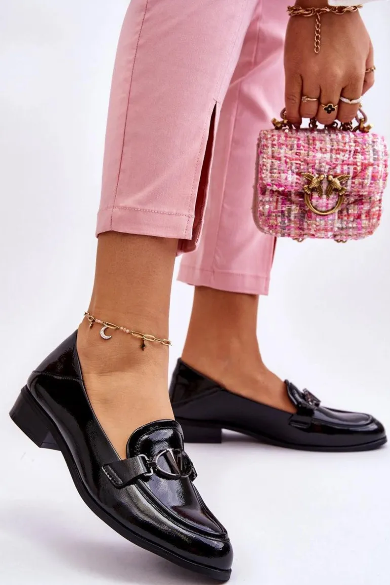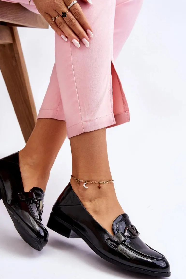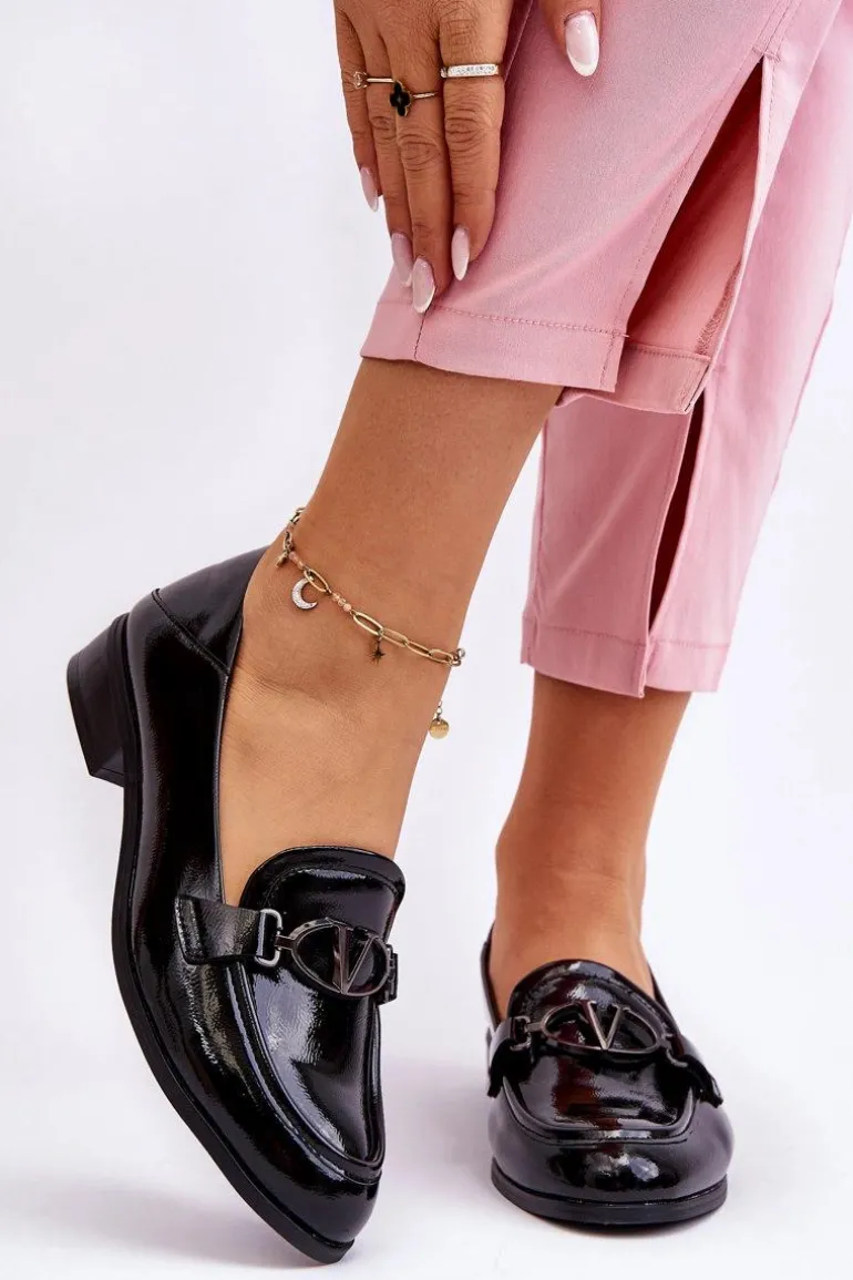 Świetne, klasyczne mokasyny zostały wykonane z wysokiej jakości eko skóry. Osadzone na płaskim obcasie. Miękka wkładka z naturalnej skóry zapewni wygodę podczas użytkowania. Z przodu cholewki znajduje się ozdobny element z literką „V” w elipsie. Idealne do wielu wiosenno-jesiennych stylizacji. Te mokasyny powinny być Twoje! Przy wyborze rozmiaru prosimy sugerować się tabelą rozmiarów.