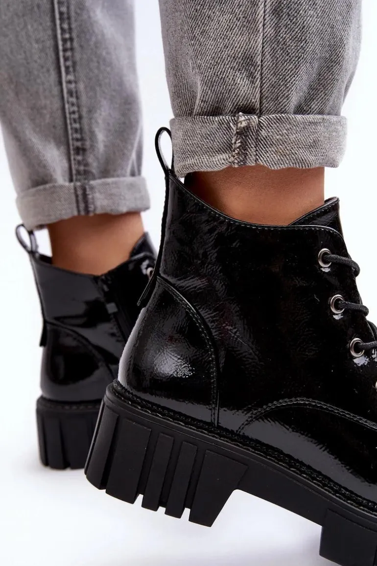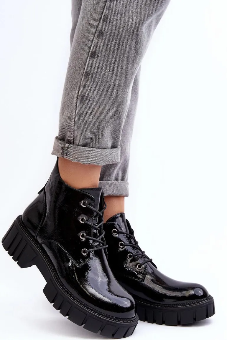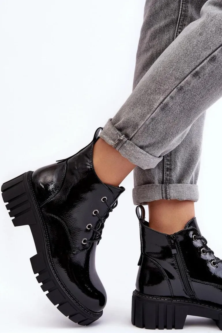 Botki damskie o klasycznym fasonie świetnie sprawdzą się na jesienne, chłodne dni. Posiadają wewnątrz ocieplenie w postaci koca obuwniczego. Osadzone na płaskim, stabilnym obcasie ze żłobieniami. Dodatkowo posiadają usztywniany zapiętek. Model z suwakiem na boku cholewki oraz sznurowaniem. Botki doskonale sprawdzą się w wielu stylizacjach. Przy wyborze rozmiaru prosimy sugerować się tabelą rozmiarów.