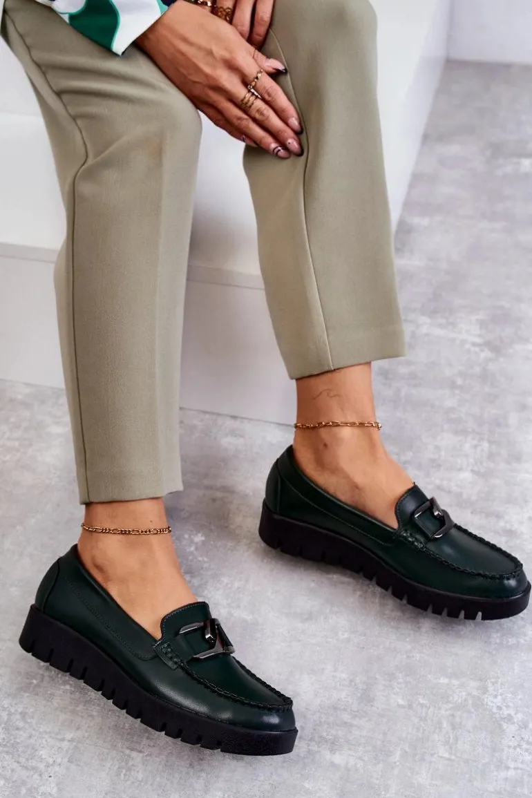 Klasyczne półbuty to doskonały wybór w stylizacjach do pracy. Świetnie prezentują się zarówno ze spodniami, jak i ze spódniczką. Zdobienie z tworzywa sztucznego pięknie podkreśla całość. Buty posiadają masywną podeszwę z wyraźnym wyżłobieniem. Lakierowana eko skóra o praktyczny wybór na co dzień. Półbuty Loafery to buty, które muszą znaleźć się w Twojej szafie! Przy wyborze rozmiaru prosimy sugerować się tabelą rozmiarów.