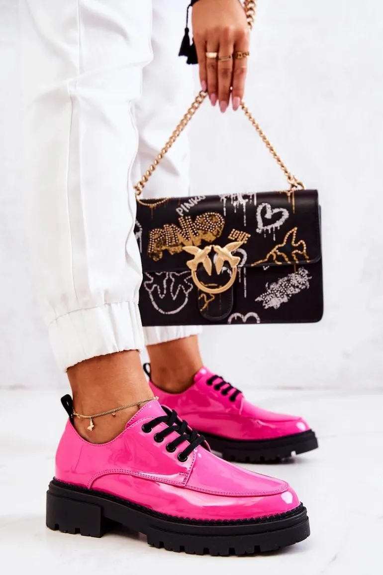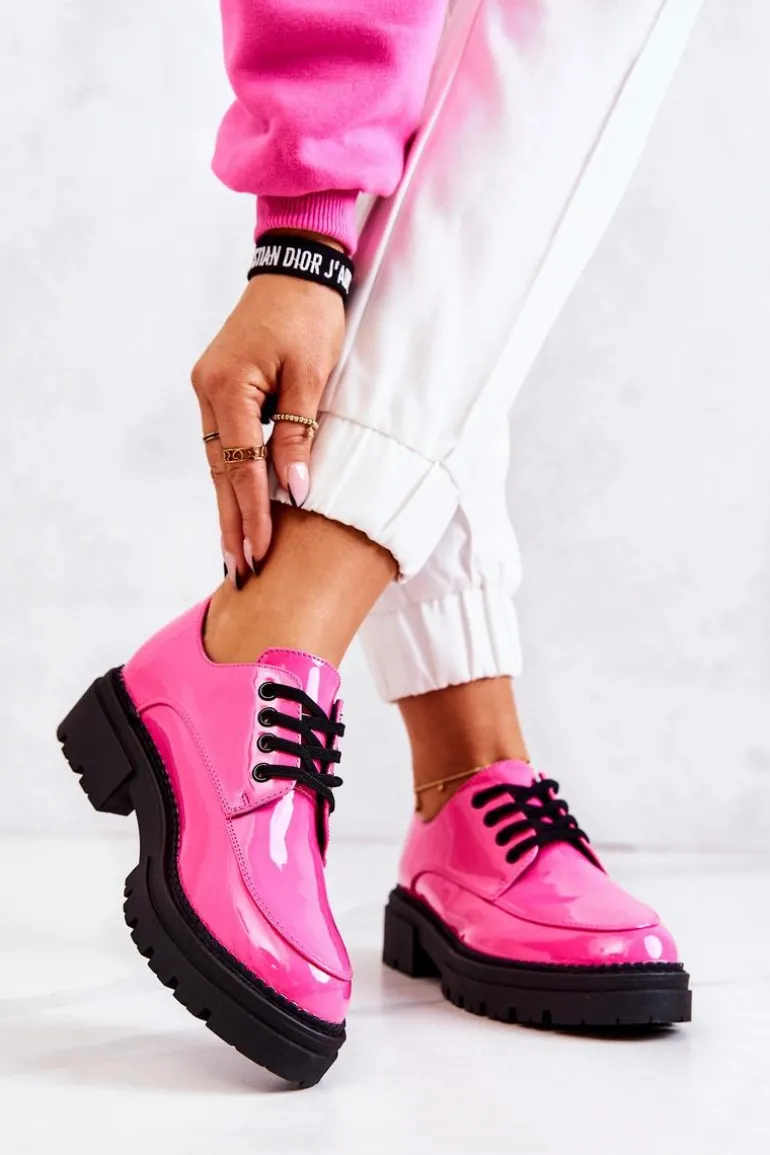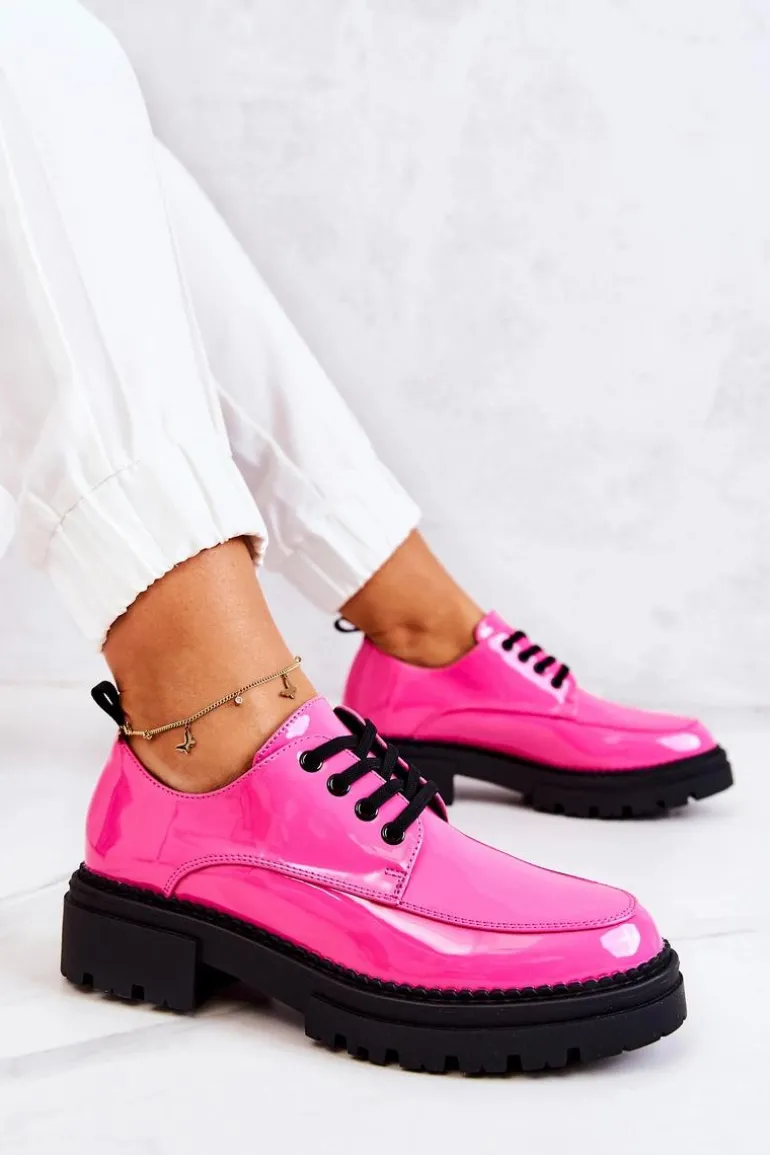 Półbuty zostały wykonane z wysokiej jakości lakierowanej eko skóry. Miękka wkładka ze skóry naturalnej to gwarancja komfortu. Elastyczne wiązanie sprawia, że można dopasować je odpowiednio do tęgości nogi. Niewysoki, masywny obcas zapewni wygodę. Koniecznie powinnaś mieć ten model w swojej szafie! Podczas wyboru rozmiaru prosimy sugerować się tabelą rozmiarów.