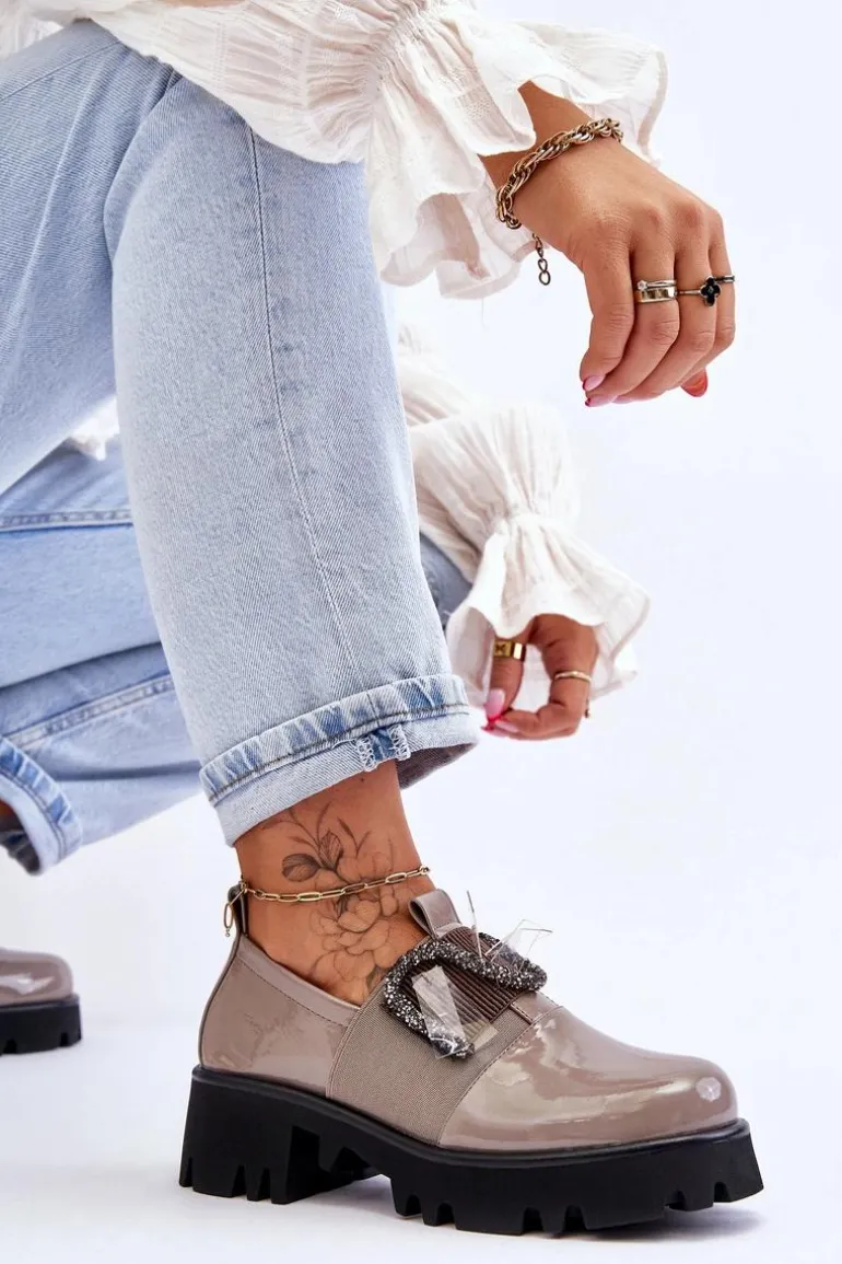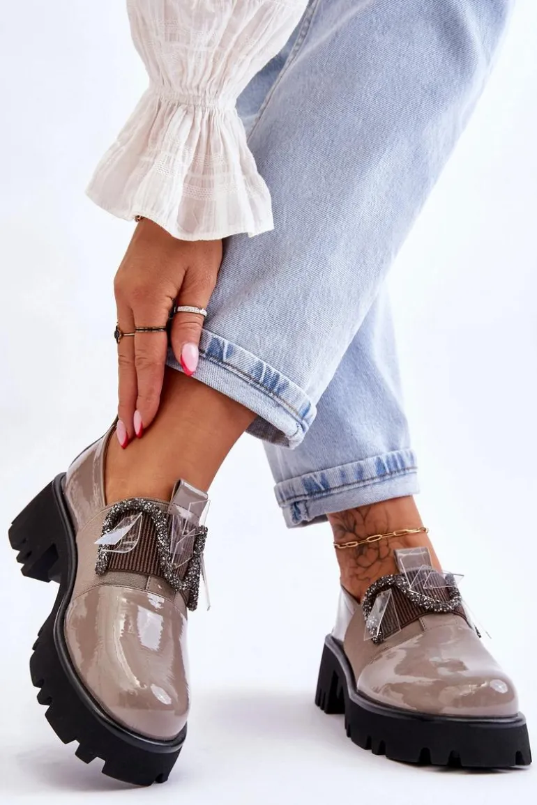 Niezwykłe półbuty damskie zostały osadzone na płaskim, masywnym obcasie oraz platformie. Wykonane z eko skóry z dbałością o szczegóły. Wkładka z naturalnej skóry zadba o Twój komfort podczas użytkowania. Idealnie będą pasować na wiele okazji. Model wsuwany, z ozdobami na przodzie. Koniecznie sprawdź całą naszą kolekcję półbutów! Przy wyborze rozmiaru prosimy sugerować się tabelą rozmiarów.