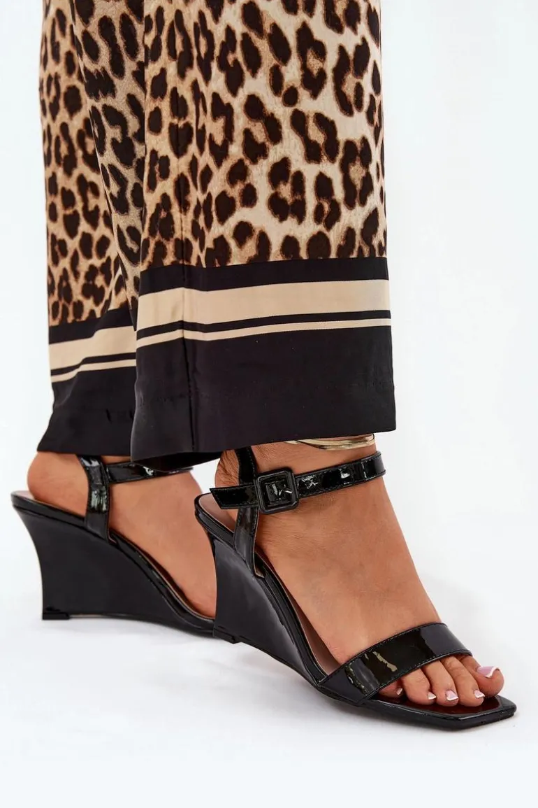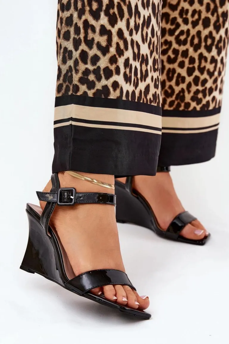 Stylowe sandały z eko skóry, osadzone na zwężanym koturnie, które łączą elegancję z nowoczesnym wyglądem. Zapinane na klamrę z regulowanym paskiem, co umożliwia idealne dopasowanie do stopy. Te modne sandały będą doskonałym wyborem na ciepłe dni, świetnie komponując się zarówno z sukienkami, jak i spodniami. Przy wyborze rozmiaru prosimy sugerować się tabelą rozmiarów.