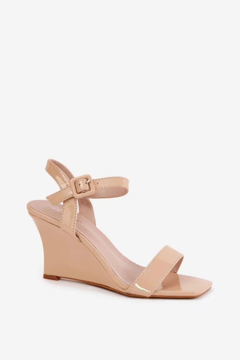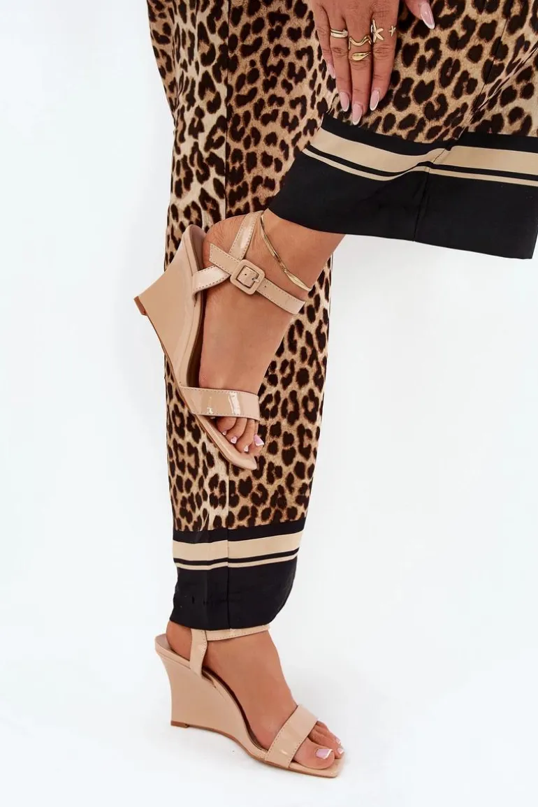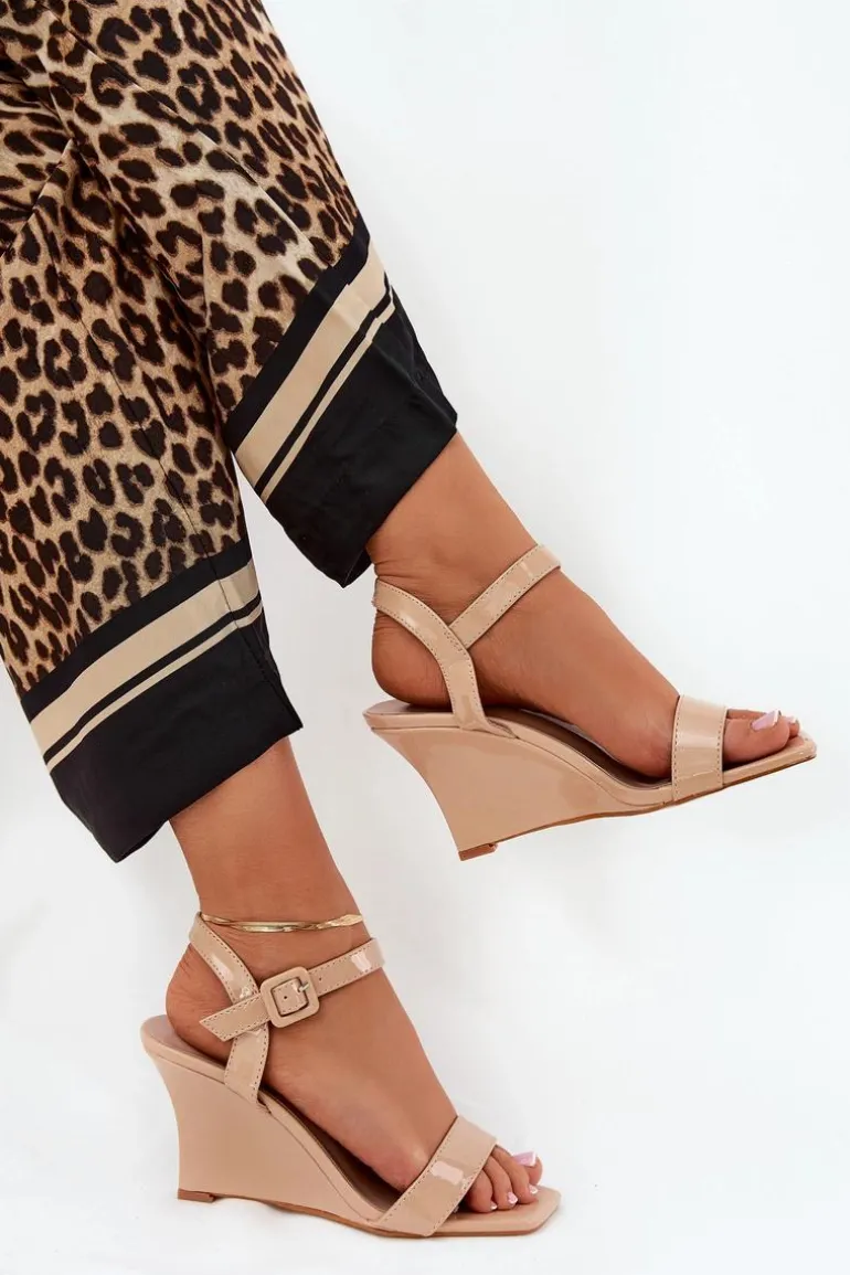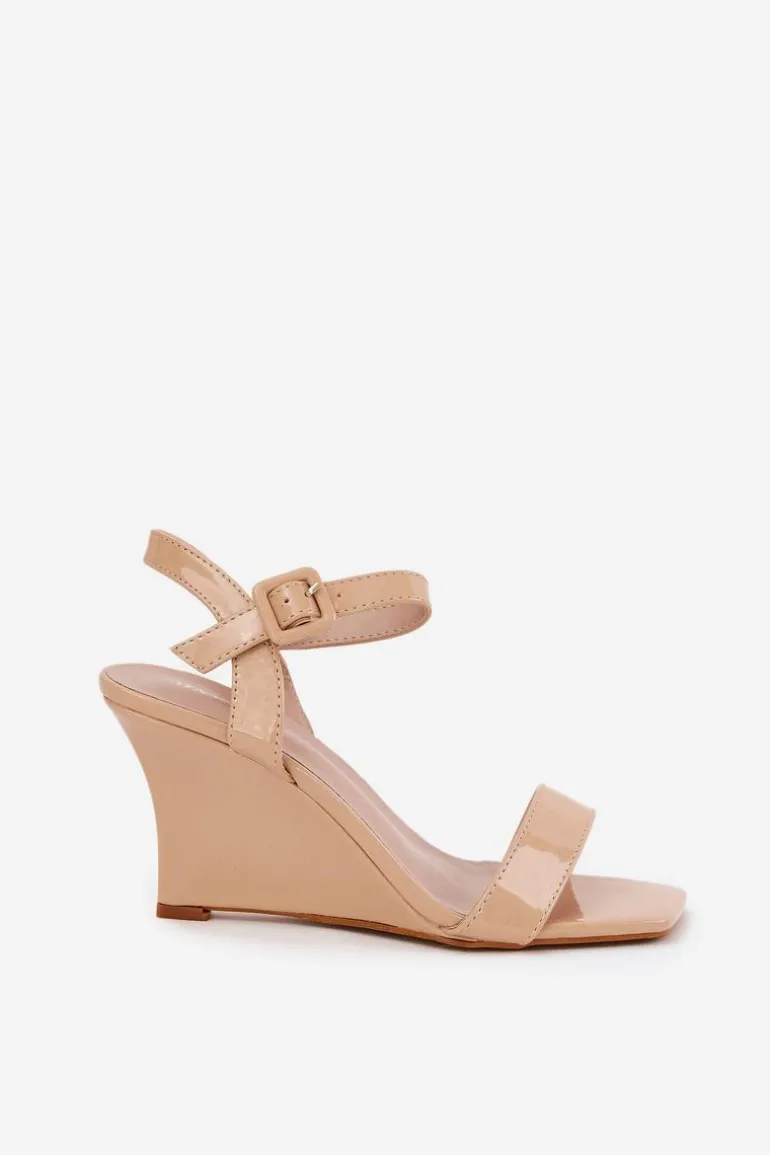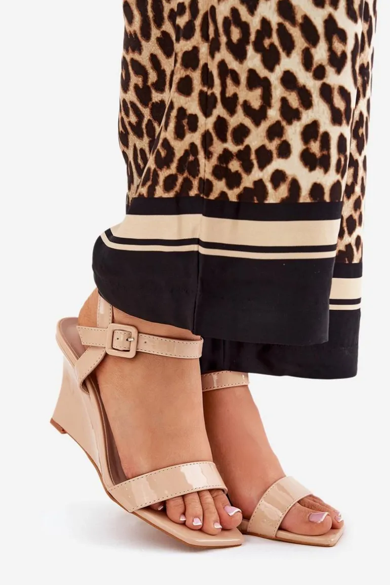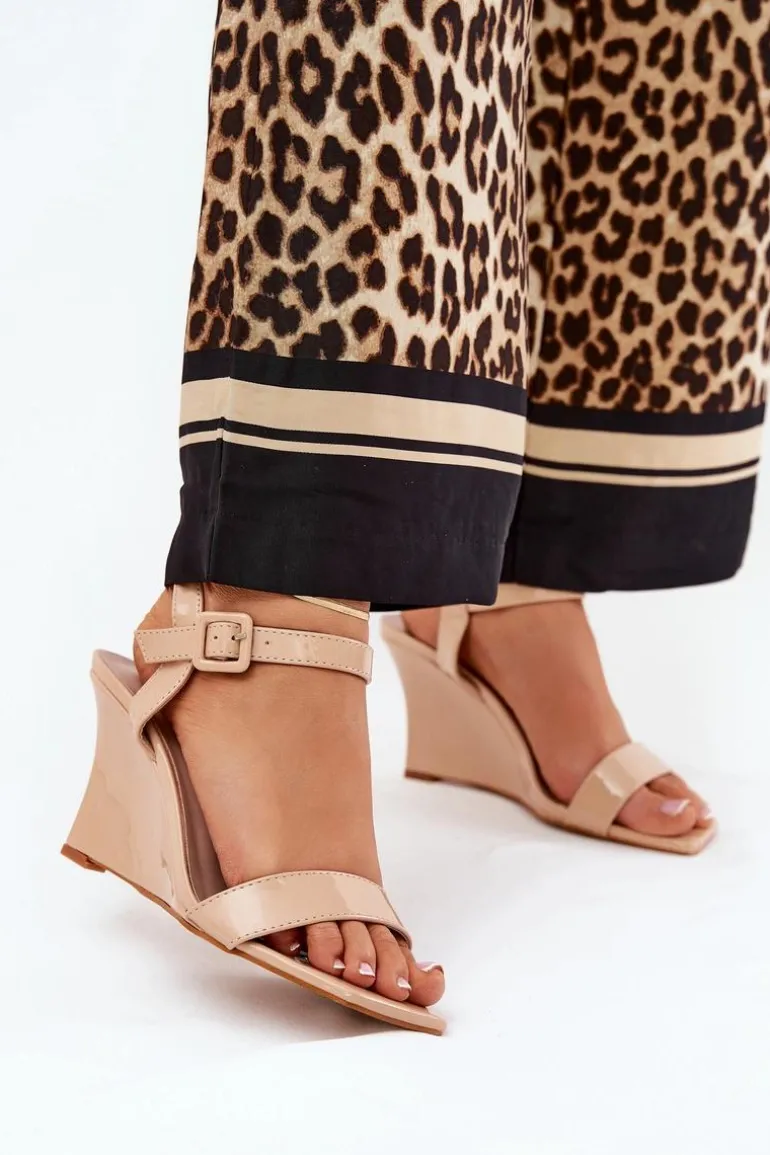 Stylowe sandały z eko skóry, osadzone na zwężanym koturnie, które łączą elegancję z nowoczesnym wyglądem. Zapinane na klamrę z regulowanym paskiem, co umożliwia idealne dopasowanie do stopy. Te modne sandały będą doskonałym wyborem na ciepłe dni, świetnie komponując się zarówno z sukienkami, jak i spodniami. Przy wyborze rozmiaru prosimy sugerować się tabelą rozmiarów.