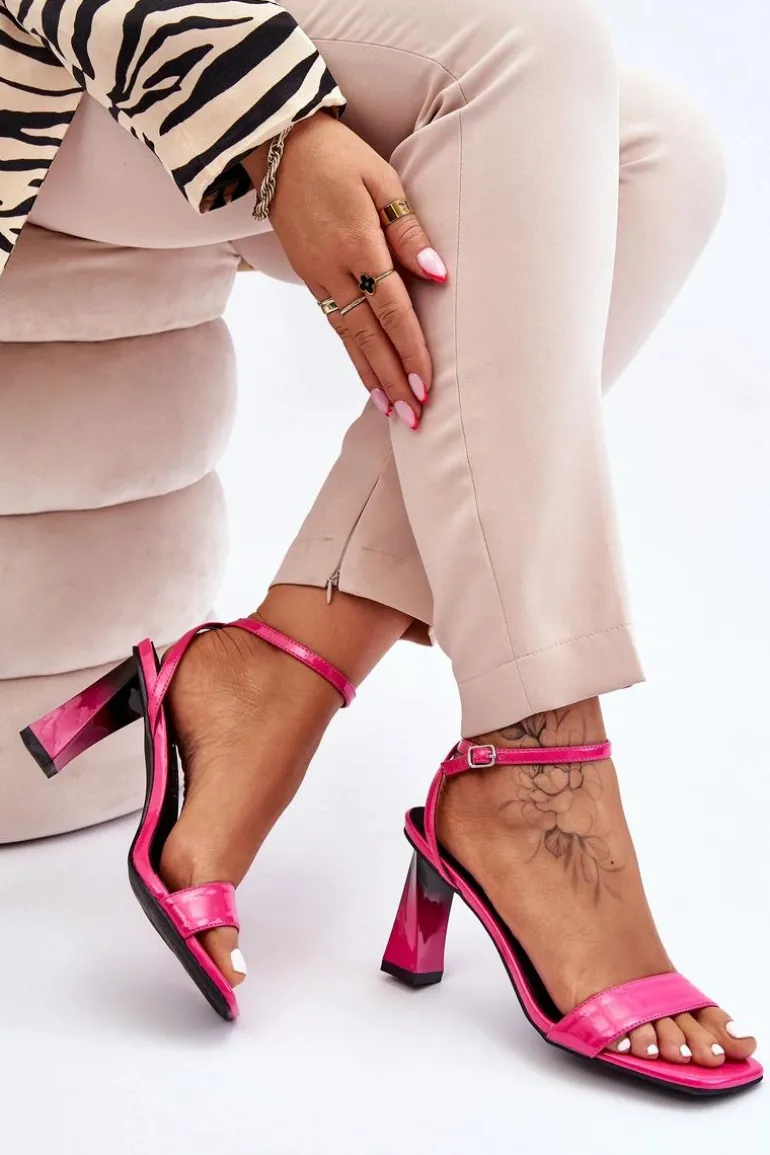 Lakierowane Sandały Na Obcasie Fuksja Owen