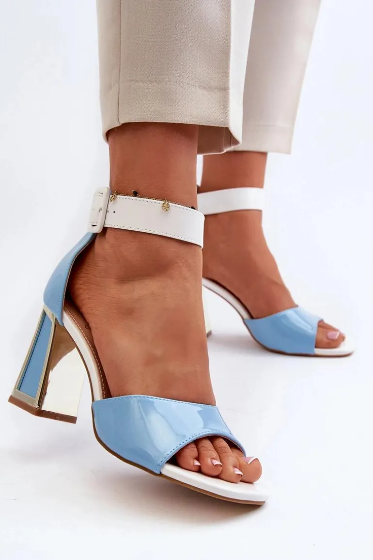 Eleganckie sandały damskie wykonane z eko skóry. Obcas w postaci słupka z lustrzanym elementem dodaje im elegancji i subtelności. Zapinane na regulowany pasek ze sprzączką, co gwarantują idealne dopasowanie do stopy. Uniwersalny fason sprawia, że świetnie pasują do różnorodnych stylizacji, od casualowych po bardziej formalne, dodając im wyrafinowanego akcentu. Przy wyborze rozmiaru prosimy sugerować się tabelą rozmiarów.
