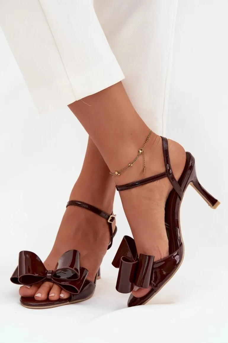 Sandały damskie wykonane z wysokiej jakości eko skóry to połączenie elegancji i kobiecego stylu. Osadzone na smukłej szpilce pięknie wydłużają sylwetkę i dodają lekkości każdej stylizacji. Regulowany pasek zapinany na sprzączkę umożliwia idealne dopasowanie do stopy. Uwagę przyciąga ozdobna kokarda umieszczona z przodu, która nadaje subtelnego, dziewczęcego uroku. To model, który doskonale sprawi się zarówno na wyjątkowe okazje, takie jak przyjęcia czy uroczystości, jak i do eleganckich, wieczorowych stylizacji. Przy wyborze rozmiaru prosimy sugerować się tabelą rozmiarów.