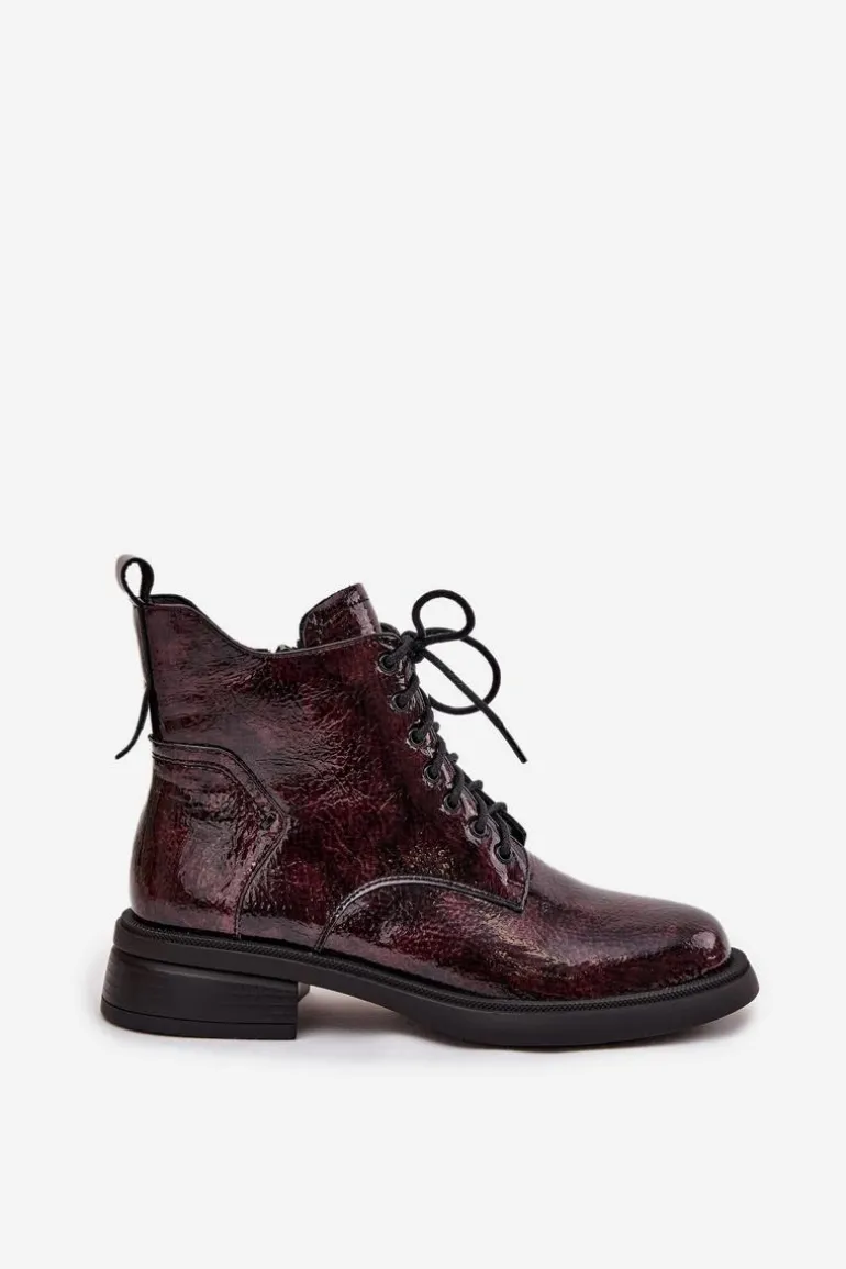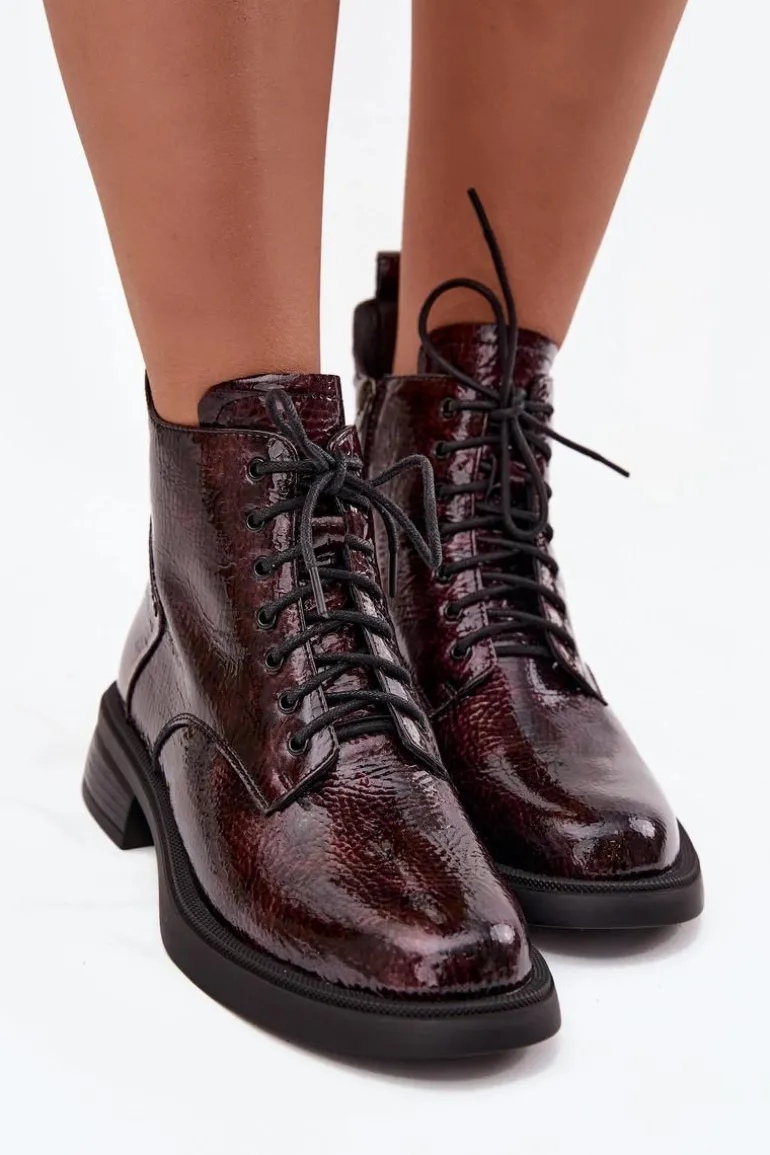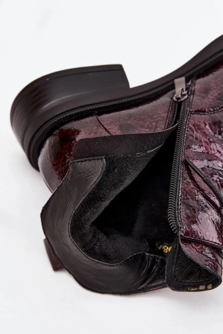 Botki damskie wykonane z naturalnej, lakierowanej skóry to elegancka propozycja na chłodniejsze dni. Niski obcas w formie klocka zapewnia stabilność i wygodę podczas noszenia. Model posiada sznurowanie oraz praktyczny zamek, co pozwala na łatwe zakładanie i idealne dopasowanie do stopy. Wnętrze ocieplone kocem obuwniczym gwarantuje komfort termiczny, dzięki czemu botki świetnie sprawdzą się w sezonie jesienno-zimowym. To uniwersalne obuwie, które doskonale uzupełni zarówno codzienne, jak i bardziej formalne stylizacje. Przy wyborze rozmiaru prosimy sugerować się tabelą rozmiarów.