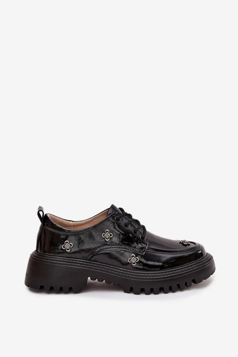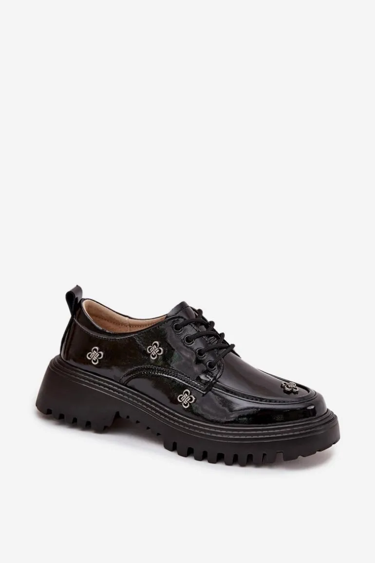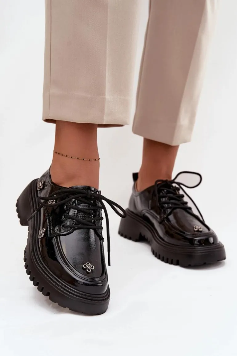 Półbuty damskie marki Artiker wykonane z naturalnej skóry. Osadzone na platformie z płaskim obcasem zapewniają komfort noszenia przez cały dzień. Klasyczne sznurowanie gwarantuje dobre dopasowanie, a urocze przypinki dodają oryginalnego i dziewczęcego charakteru. To idealny model do codziennych stylizacji. Przy wyborze rozmiaru prosimy sugerować się tabelą rozmiarów.