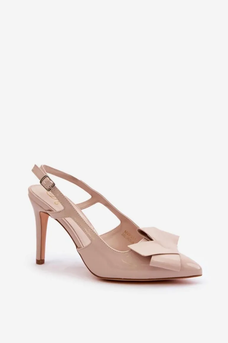 Eleganckie szpilki damskie wykonane z lakierowanej eko skóry to stylowa propozycja na wyjątkowe okazje. Model charakteryzuje się szpiczastymi noskami, które optycznie wysmuklają nogi, oraz regulowanym paskiem ze sprzączką, zapewniającym doskonałe dopasowanie. Przód buta zdobi efektowna ozdoba, dodając całości wyrazistego charakteru. Idealne do eleganckich sukienek lub wieczorowych stylizacji! Przy wyborze rozmiaru prosimy sugerować się tabelą rozmiarów.
