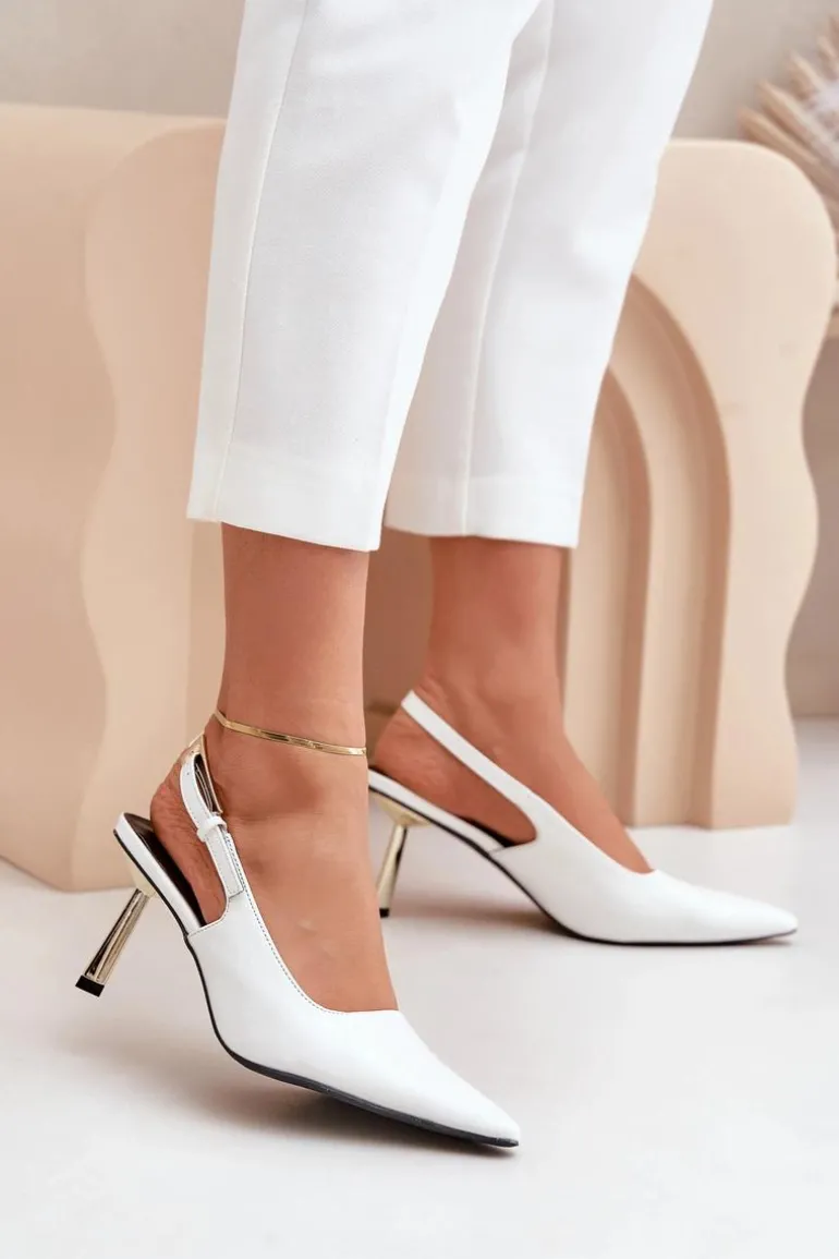 Eleganckie szpilki z lakierowanej eko skóry to wyjątkowy wybór dla miłośniczek stylowych akcentów. Model osadzony na ozdobnej, złotej szpilce dodaje szyku każdej stylizacji. Szpiczaste noski podkreślają elegancję butów, a regulowany pasek ze sprzączką zapewnia wygodne i pewne dopasowanie. Idealne na wyjątkowe okazje, doskonale dopełnią wieczorowe i koktajlowe kreacje. Przy wyborze rozmiaru prosimy sugerować się tabelą rozmiarów.