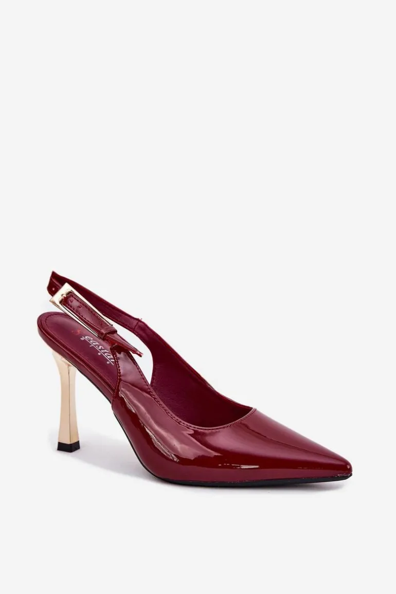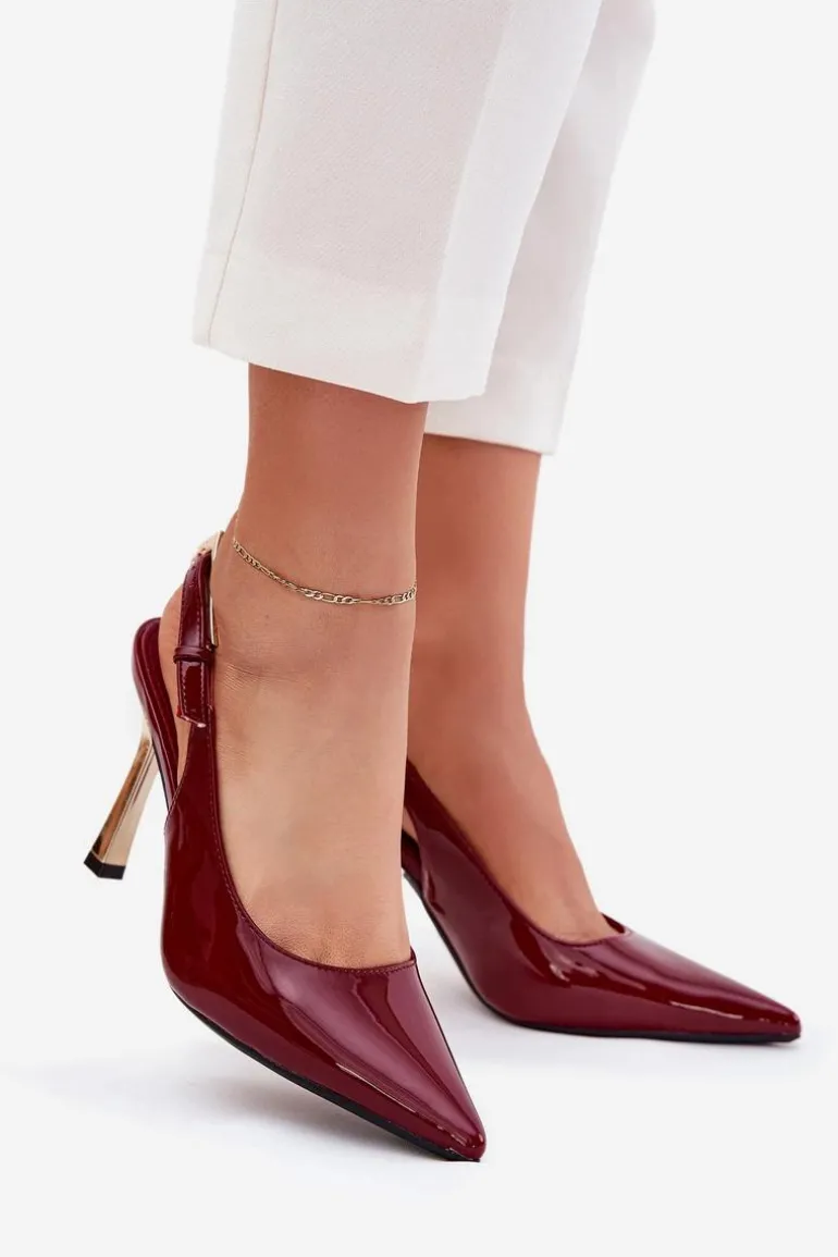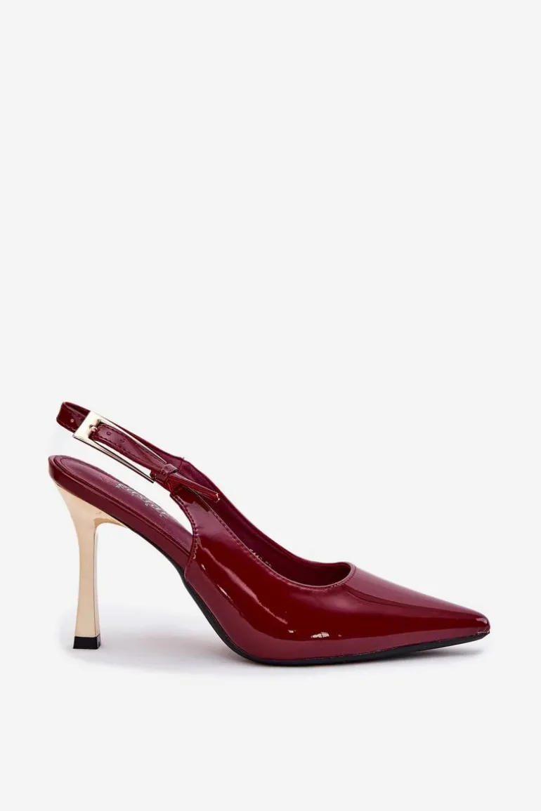Lakierowane eleganckie szpilki z odkrytą piętą to połączenie klasyki i nowoczesności. Szpiczaste noski optycznie wysmuklają nogi, a zapinane na regulowany pasek ze sprzączką, zapewniają idealne dopasowanie i stabilność. Te szpilki doskonale sprawdzą się na specjalne okazje, łącząc elegancję z subtelnym, ale wyrazistym stylem. Idealne do wieczorowych stylizacji, dodają szyku i pewności siebie. Przy wyborze rozmiaru prosimy sugerować się tabelą rozmiarów.