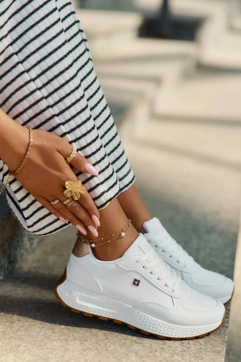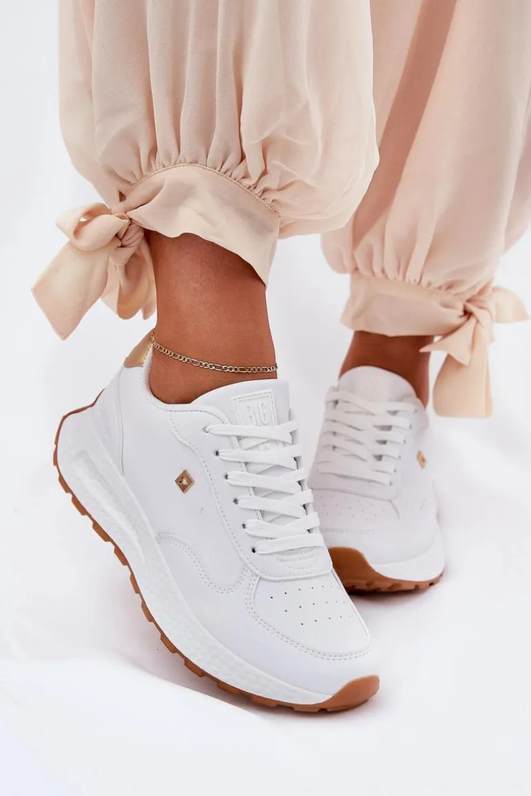 Lekkie buty sportowe od marki Big Star. Osadzone na platformie, łączą nowoczesny wygląd z funkcjonalnością. Model ten posiada innowacyjną wkładkę HI-POLY SYSTEM, wykonaną z materiału pochodzącego z recyklingu. Wkładka charakteryzuje się odpornością na ścieranie i odkształcenia, skutecznie absorbuje wilgoć oraz amortyzuje wstrząsy, zapewniając wygodę nawet podczas intensywnych aktywności. Te buty to idealne połączenie komfortu, trwałości i modnego wyglądu, doskonałe na co dzień i do sportowych stylizacji. Przy wyborze rozmiaru prosimy sugerować się tabelą rozmiarów.