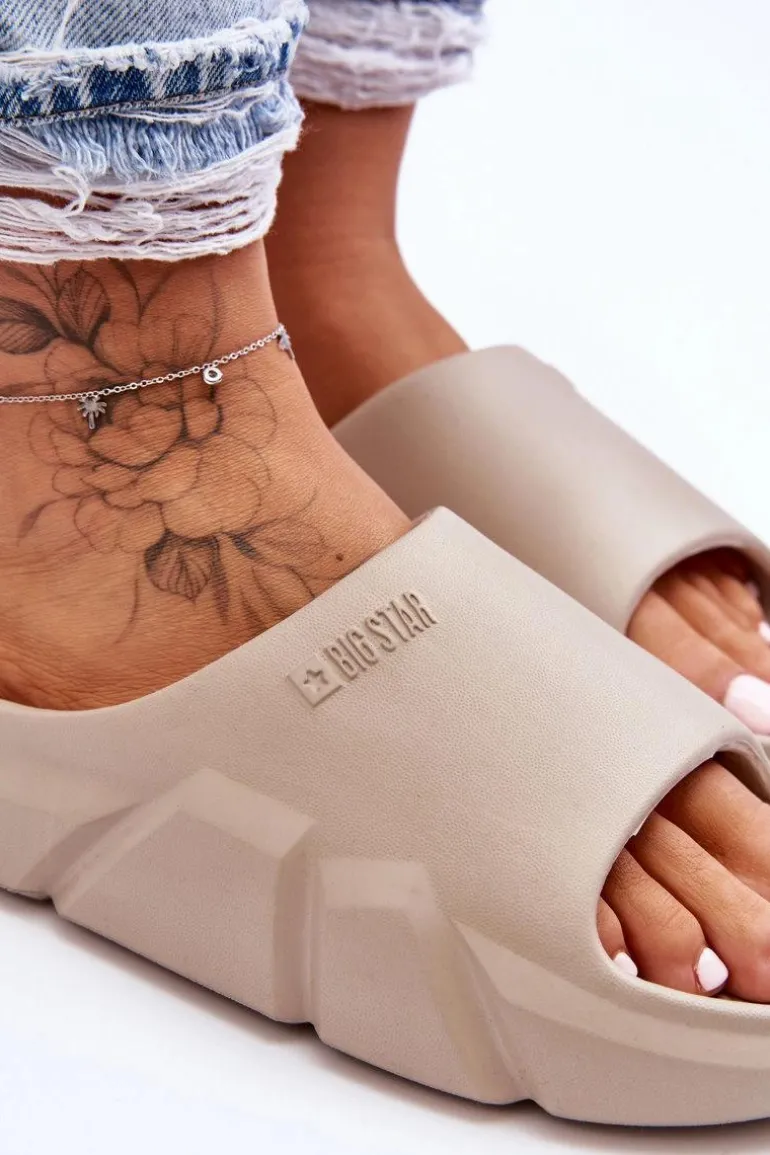 Klapki marki Big Star zostały wykonane w całości z piankowego tworzywa. Masywna platforma świetnie odizoluje od podłoża. Klapki są niezwykle komfortowe i lekkie w użytkowaniu. Na wierzchu widnieje tłoczone logo marki Big Star. Koniecznie powinnaś je mieć w swojej szafie! Przy wyborze rozmiaru prosimy sugerować się tabelą rozmiarów.