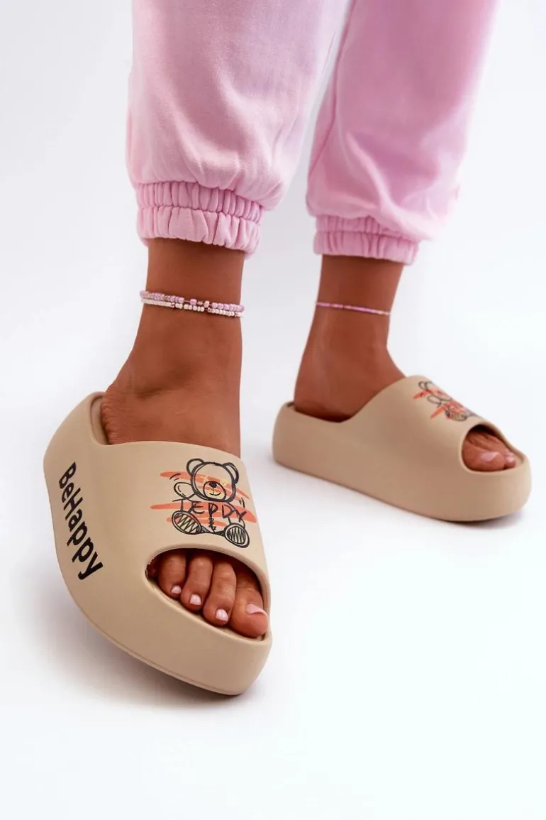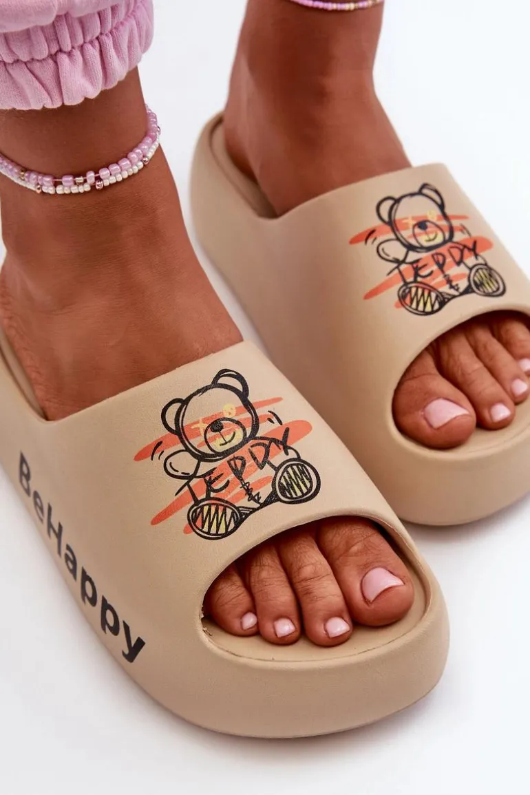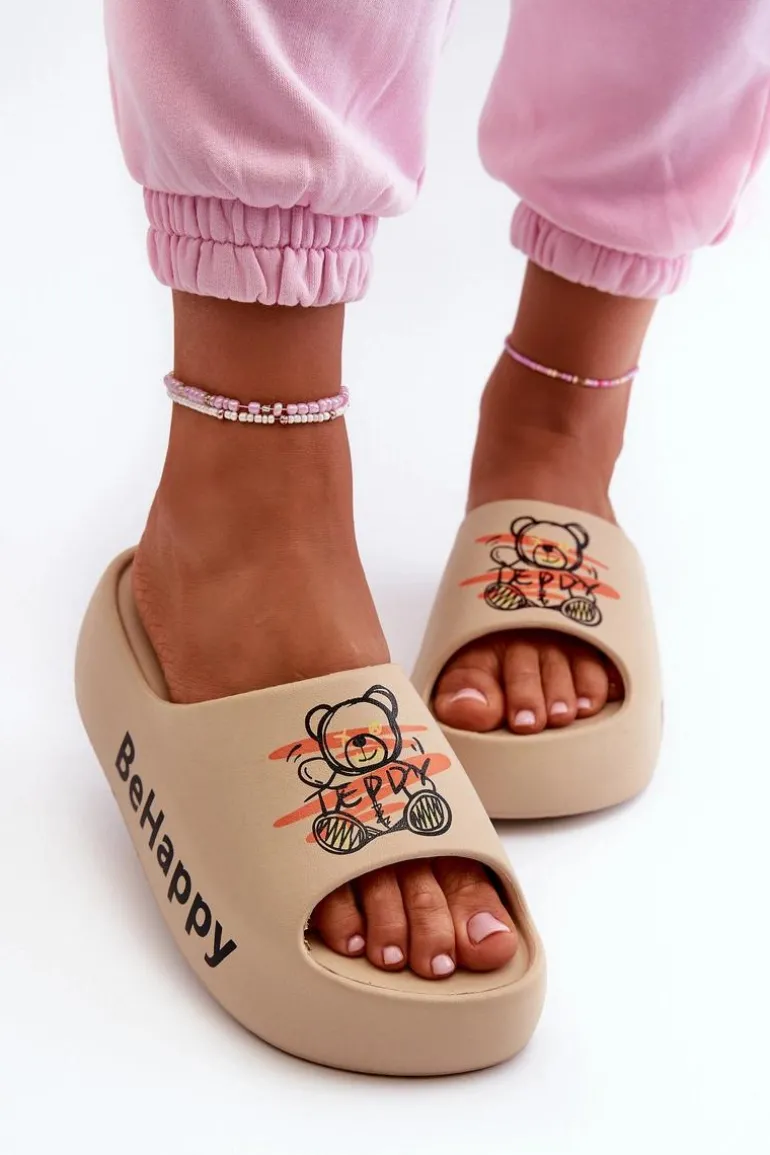 Urocze klapki damskie, które idealnie sprawdzą się na wakacyjne wyjazdy. Wykonane z piankowego tworzywa. Osadzone na grubej podeszwie. Ozdobione nadrukiem w postaci misia. Lekki i wygodny model, który z pewnością przypadnie Ci do gustu! Przy wyborze rozmiaru prosimy sugerować się tabelą rozmiarów.
