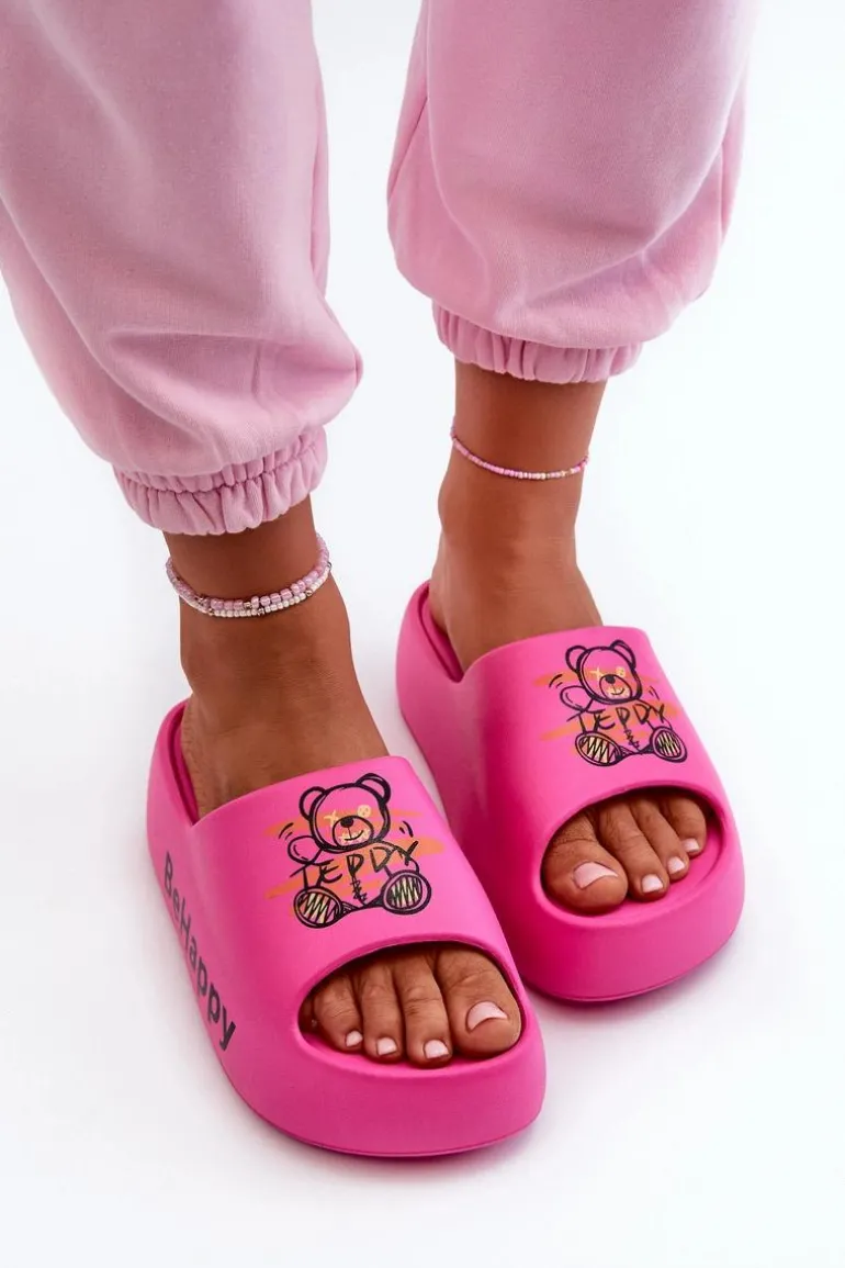 Urocze klapki damskie, które idealnie sprawdzą się na wakacyjne wyjazdy. Wykonane z piankowego tworzywa. Osadzone na grubej podeszwie. Ozdobione nadrukiem w postaci misia. Lekki i wygodny model, który z pewnością przypadnie Ci do gustu! Przy wyborze rozmiaru prosimy sugerować się tabelą rozmiarów.