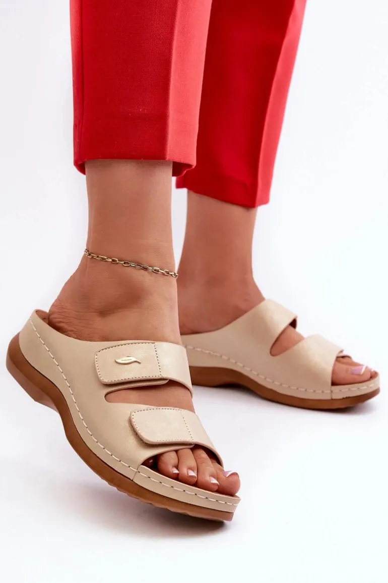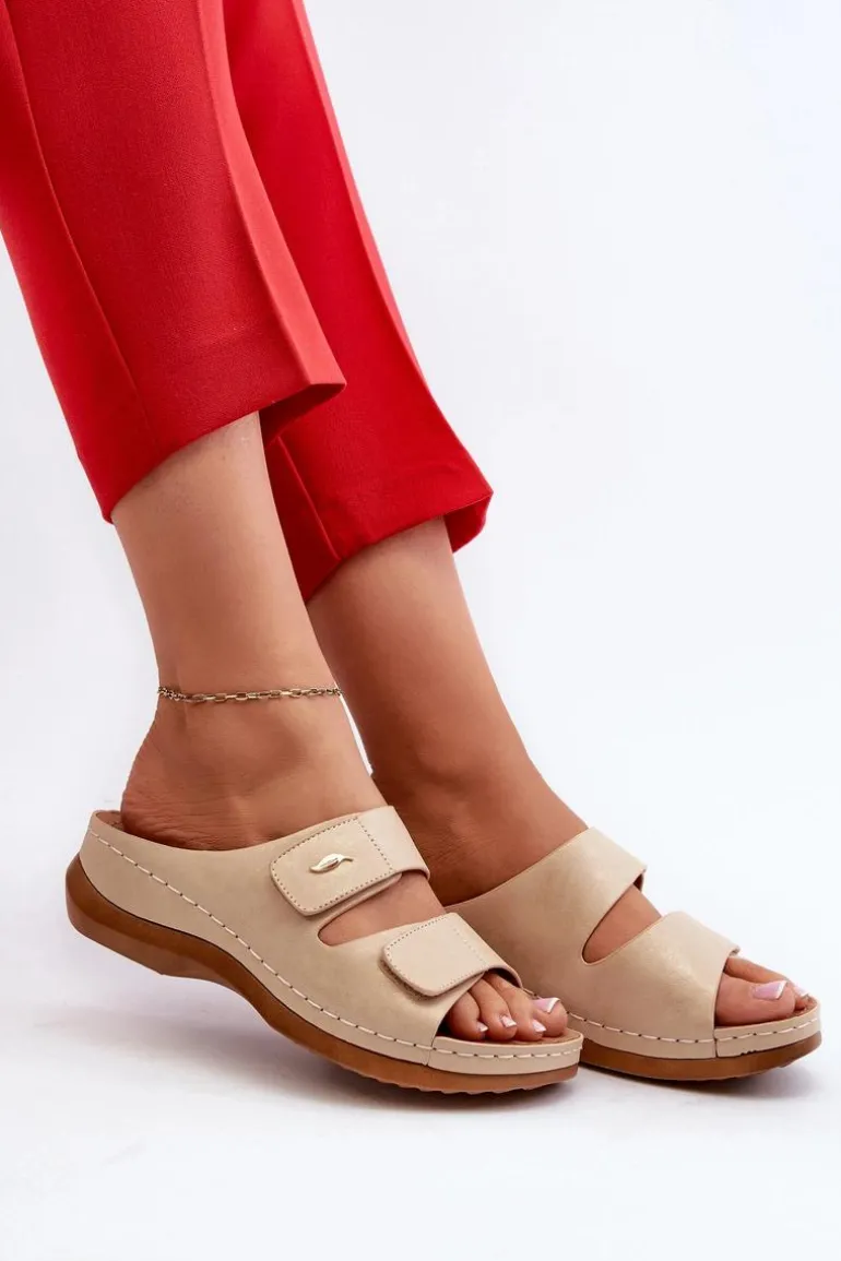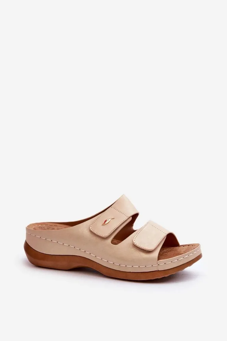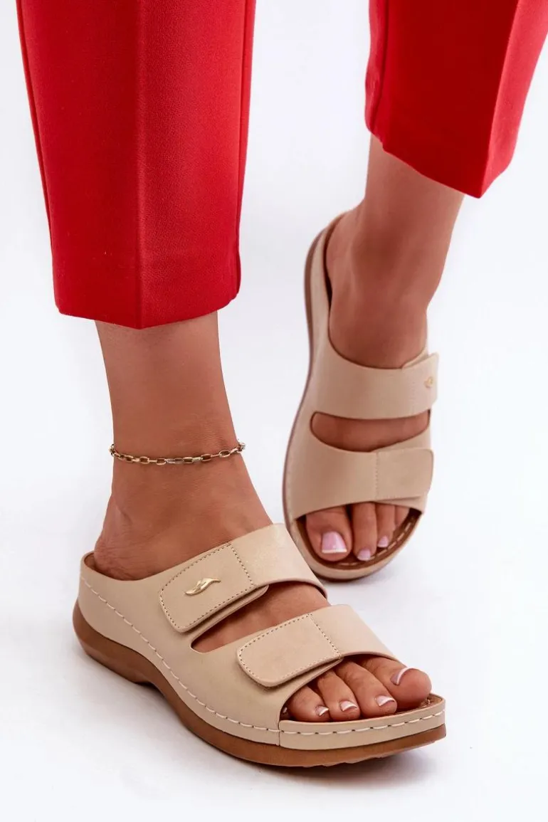 Lekkie Klapki Damskie Z Eko Skóry Beżowe Frellia