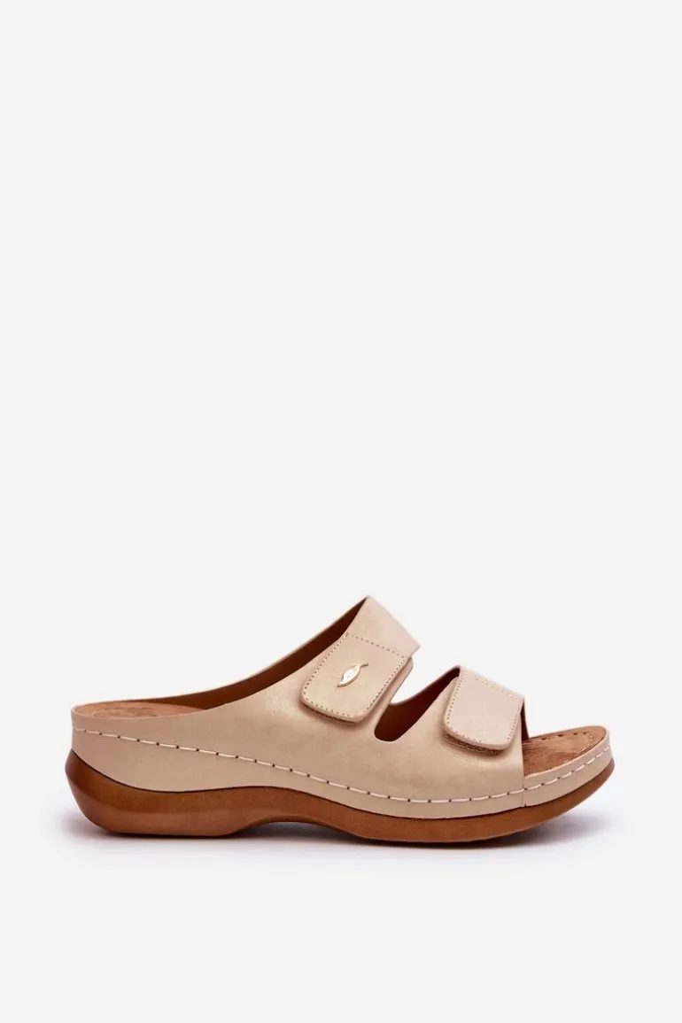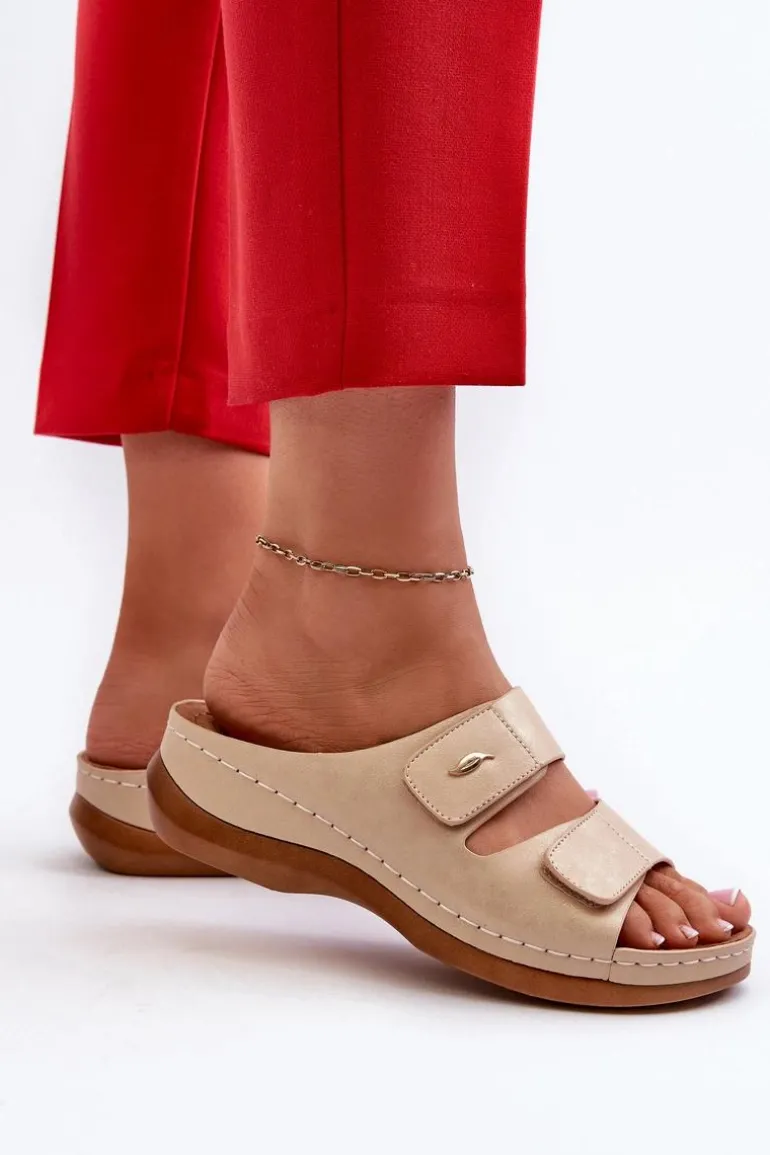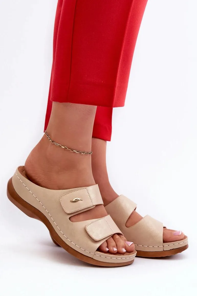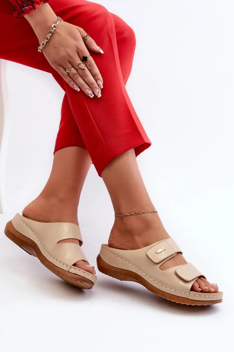 Lekkie Klapki Damskie Z Eko Skóry Beżowe Frellia