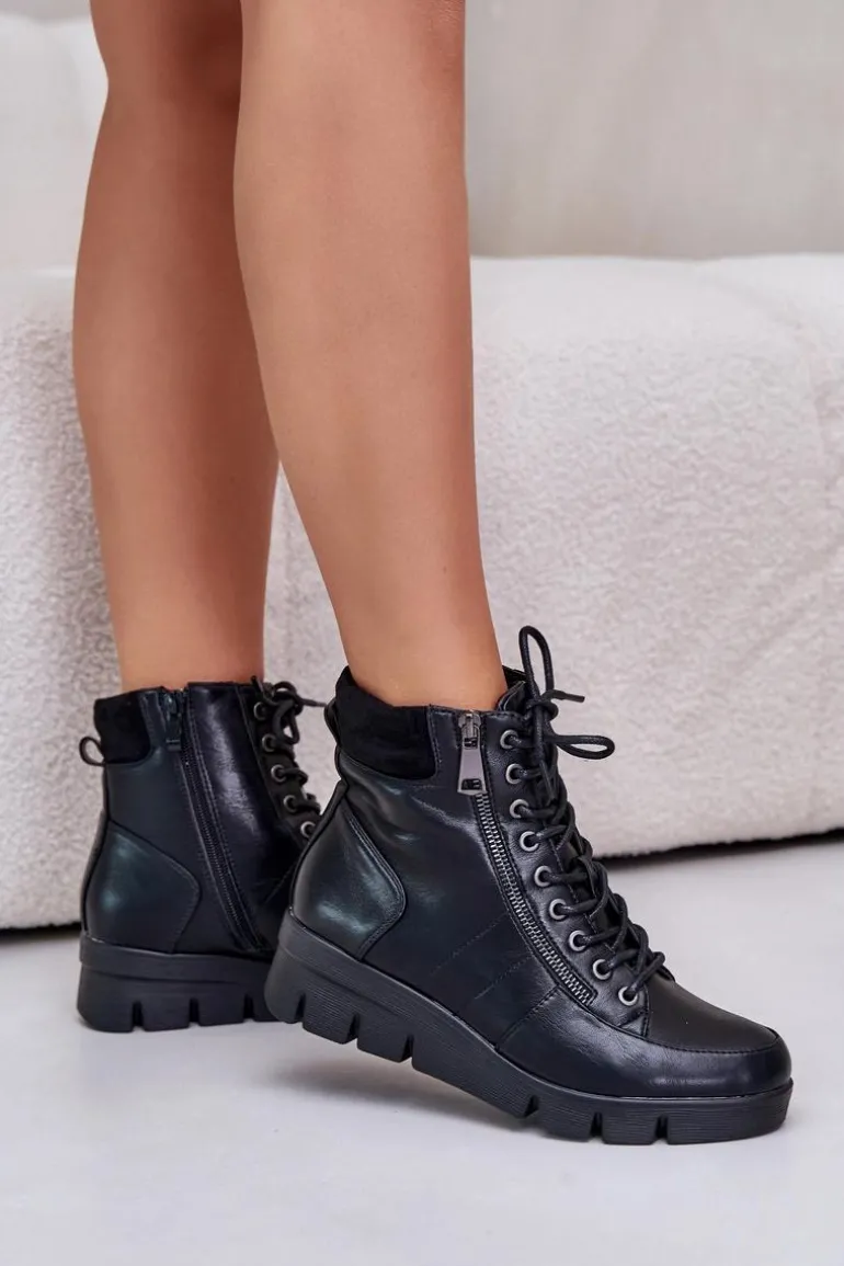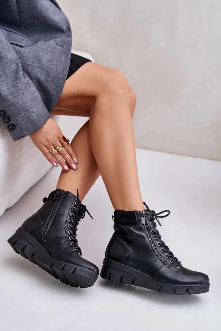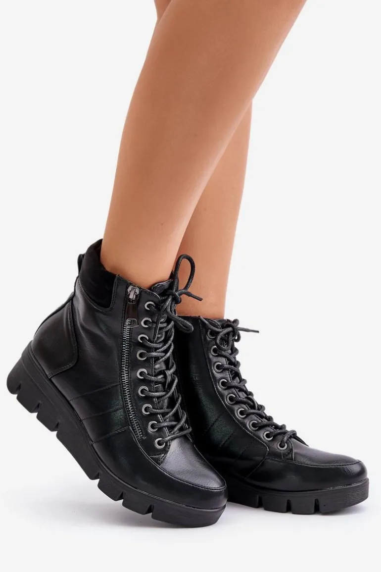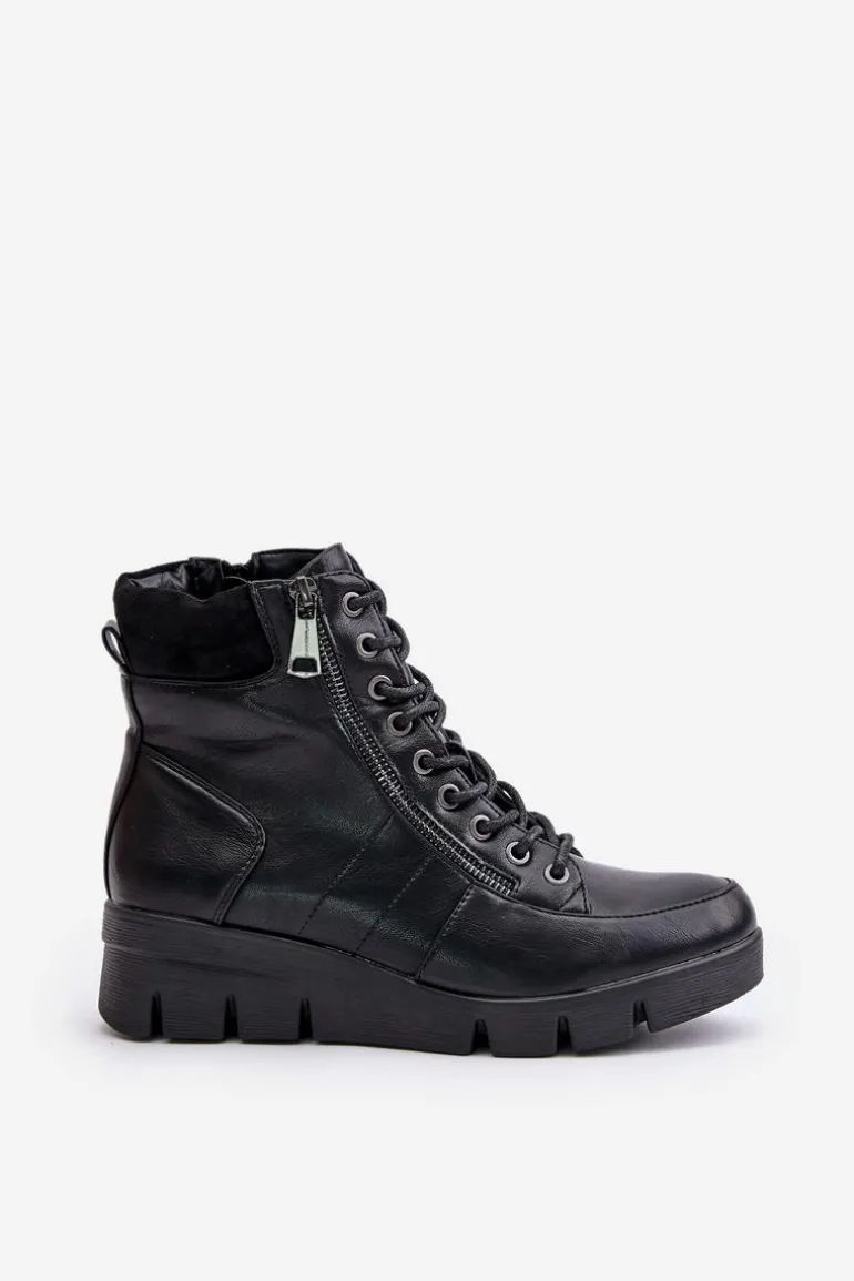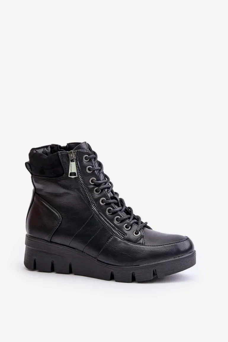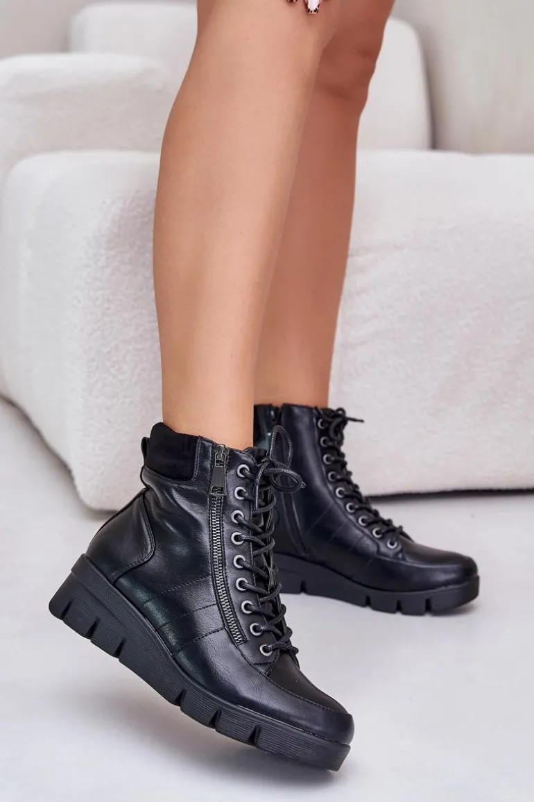 Lekkie Ocieplane Botki Damskie Na Platformie I Koturnie Czarne Savindria