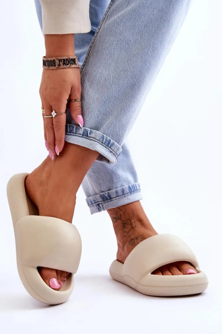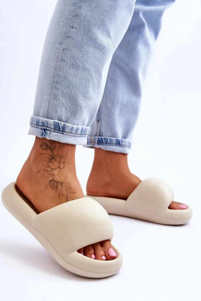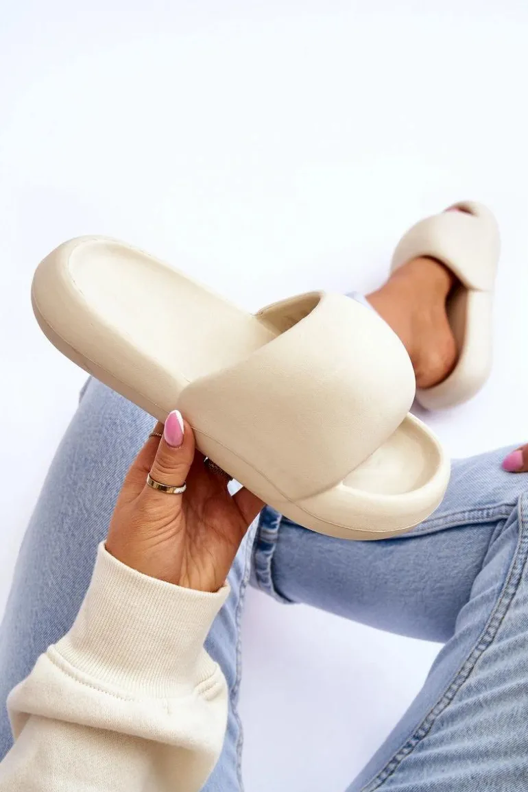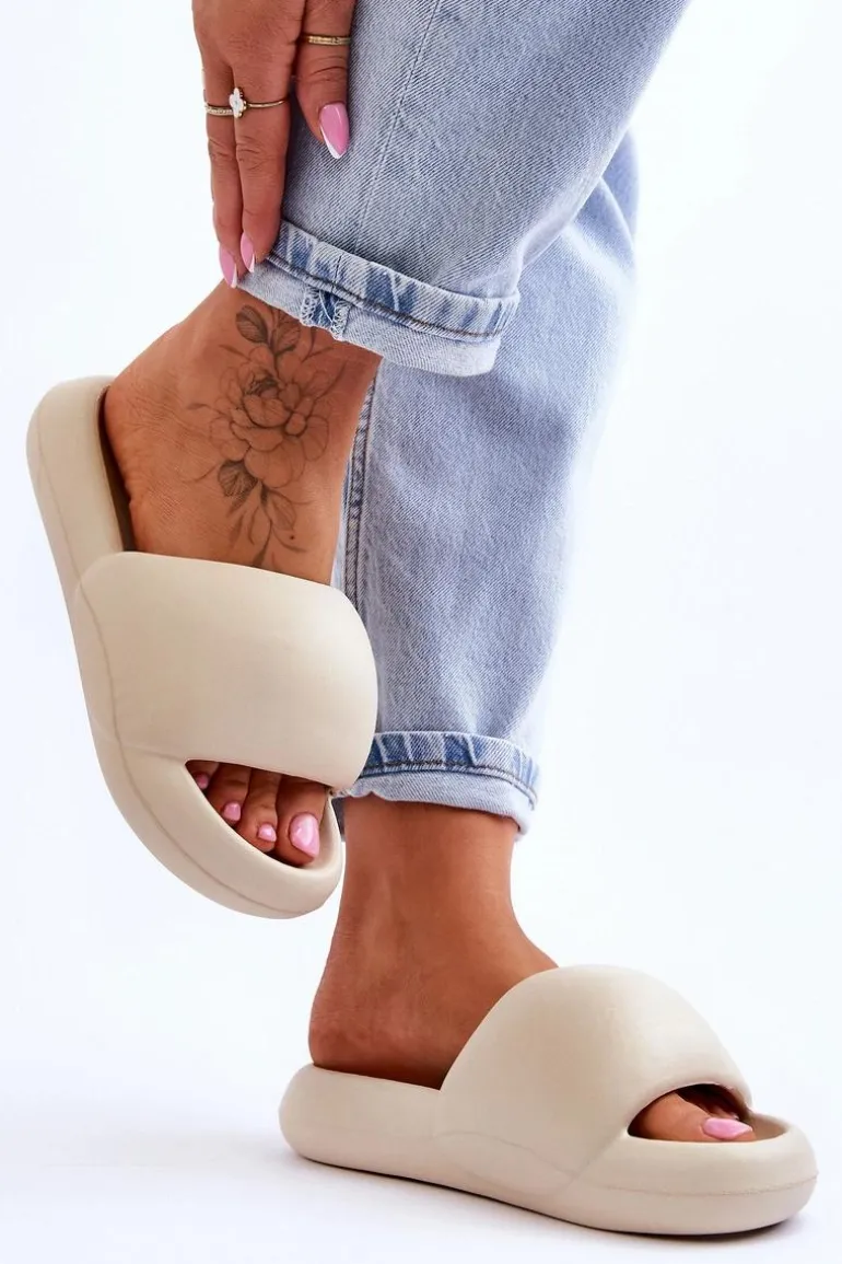 Lekkie Piankowe Damskie Klapki Na Platformie Beżowe Milton