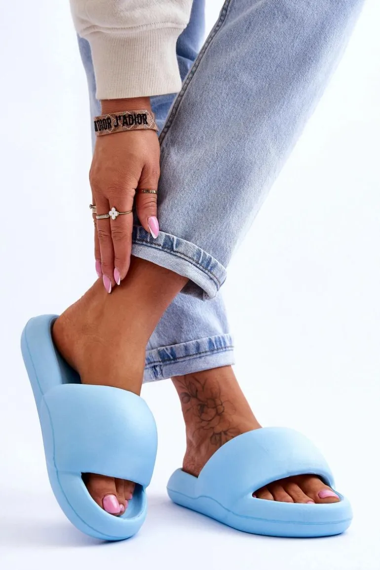Te klapki stały się HITEM! Ten niezwykle lekki i wygodny model został wykonany z miękkiego tworzywa w formie pianki. Klapki są wsuwane. Osadzone na masywnej platformie, co sprawia, że świetnie chronią przed nierównym podłożem. Klapki możesz użyć zamiast papci, jako obuwie na basen czy po prostu na co dzień w upalne dni! Przy wyborze rozmiaru prosimy sugerować się tabelą rozmiarów.