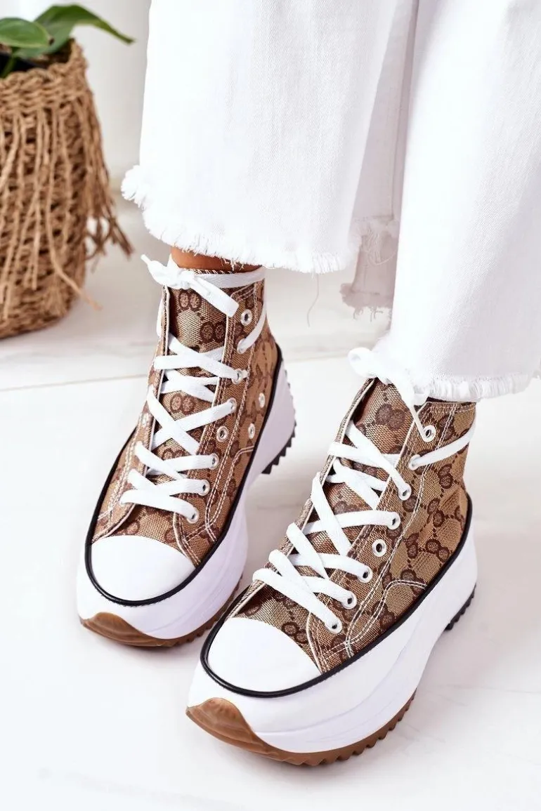 Wyjątkowe trampki na platformie. Buty dobrze dopasowują się do kształtu stopy, posiadają miękką, materiałową wkładkę oraz antypoślizgową podeszwę. Koniecznie sprawdź całą naszą kolekcję trampek! Przy wyborze rozmiaru prosimy sugerować się tabelą rozmiarów.