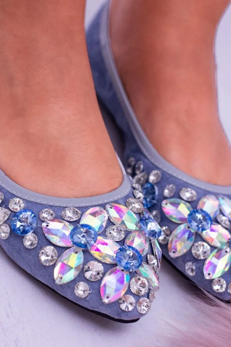 Lu Boo Błękitne Zamszowe Balerinki na Gumce Kamienie Even