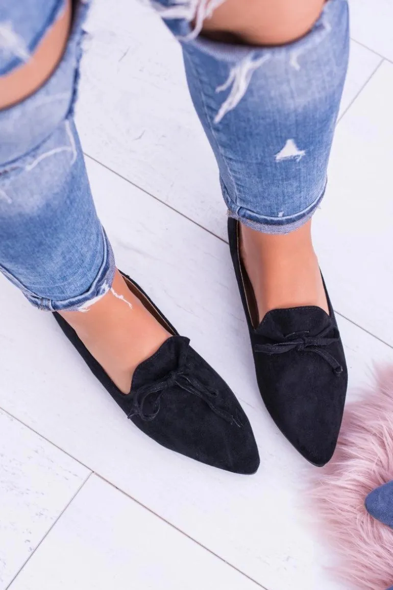 Lu Boo Czarne Baleriny W Szpic Lordsy Zamsz Feliciano