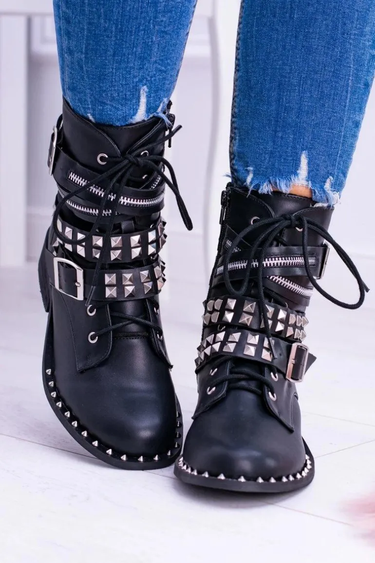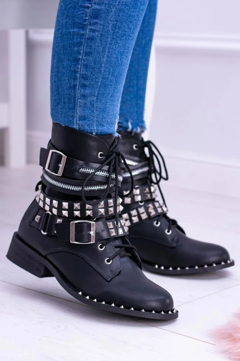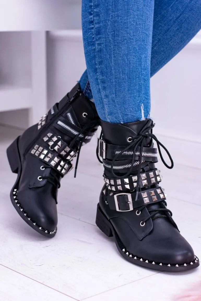 Lu Boo Czarne Botki z Ćwiekami Zamek Klamry