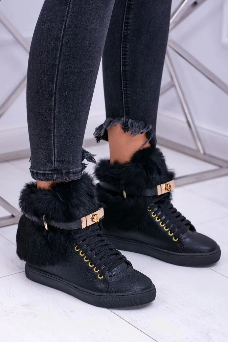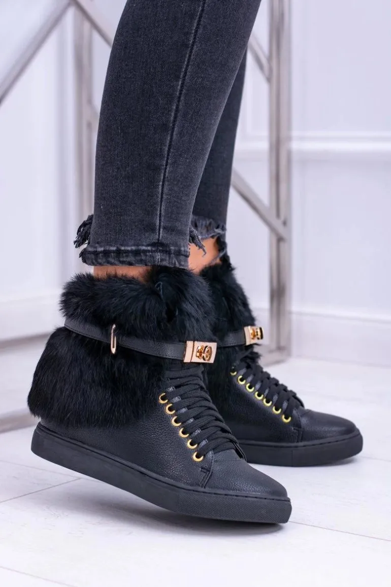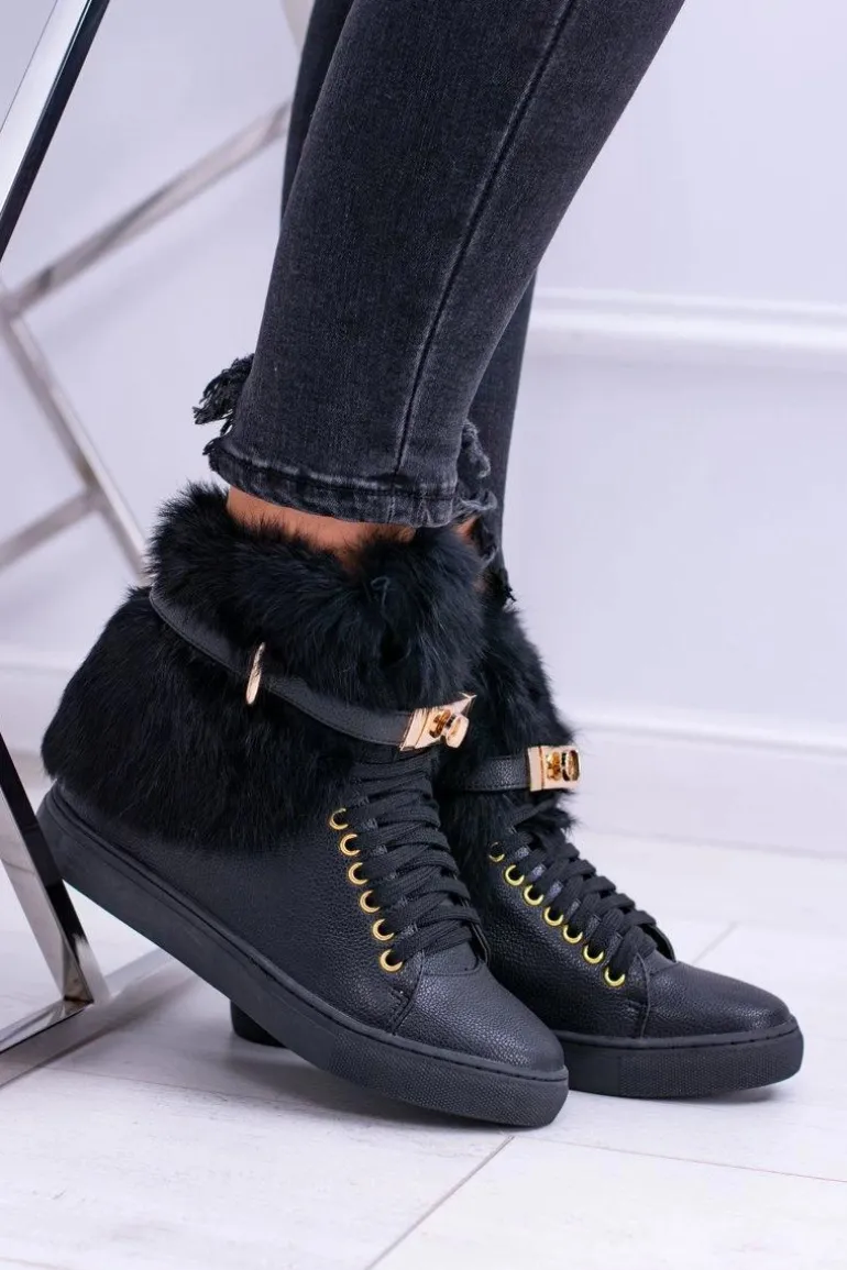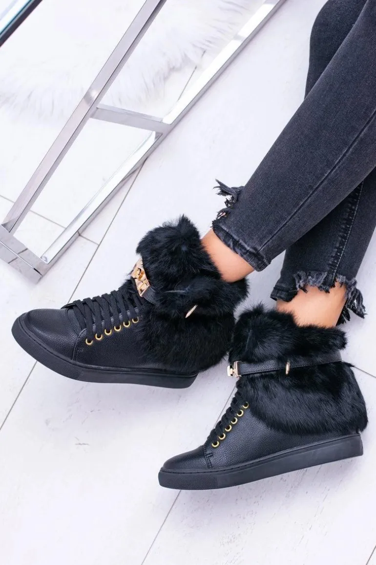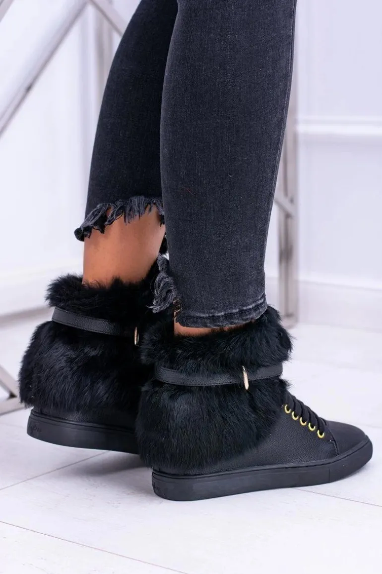 Buty, które pokochały kobiety na całym świecie, teraz dostępne w wersji zdobionej grubym naturalnym futerkiem! Nie daj się zaskoczyć zimie i spraw sobie rozkosz podczas tych mroźnych dni. Buty noszone przez największe gwiazdy. Złote dodatki w postaci zamka oracz oczek idealnie wpasowują się w aktualne oraz nadchodzące trendy! Delikatny koturn zapewni Ci komfort podczas zimowych spacerów a delikatnie ocieplenie w postaci „Pluszowego misia” otuli twe stopy niczym puch. Skomponowanie idealnej stylizacji z tymi butami nie jest niczym trudnym. Dostępne w kilku wersjach i kolorach!