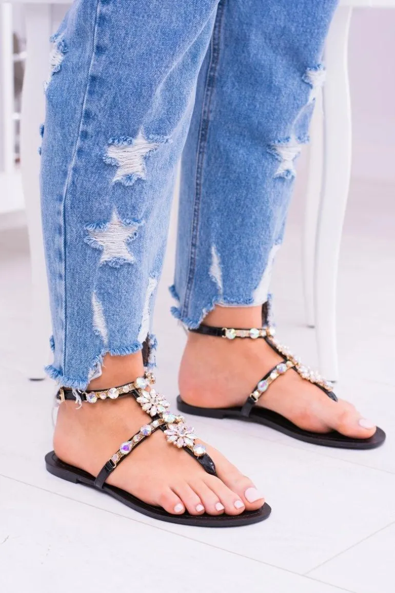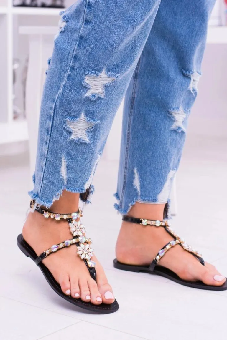 Lu Boo Czarne Damskie Sandałki Z Cyrkoniami Venice
