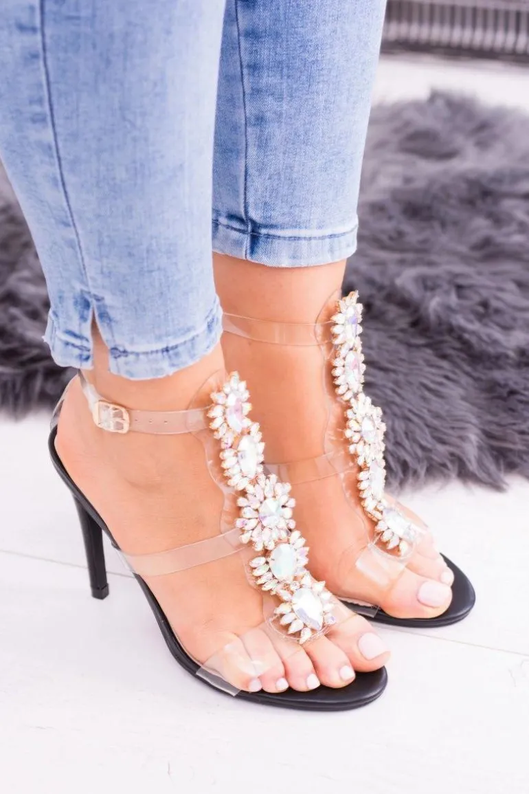 Lu Boo Czarne Sandały Na Szpilce Cyrkonie Serenada