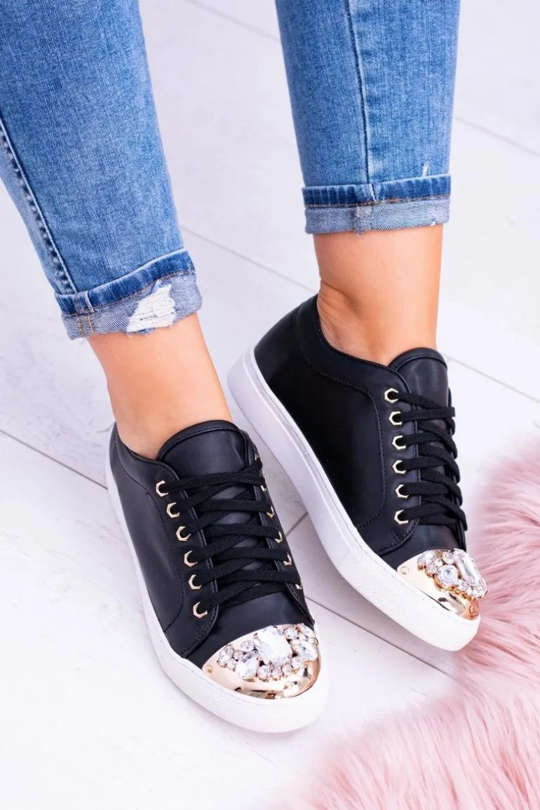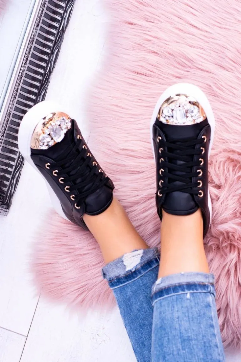 Lu Boo Czarne Trampki z Błyszczącymi Kryształami