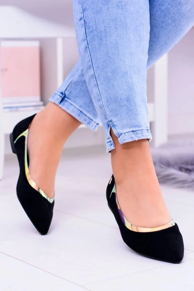 Lu Boo Czarne Transparentne Holograficzne Balerinki w Szpic Lison