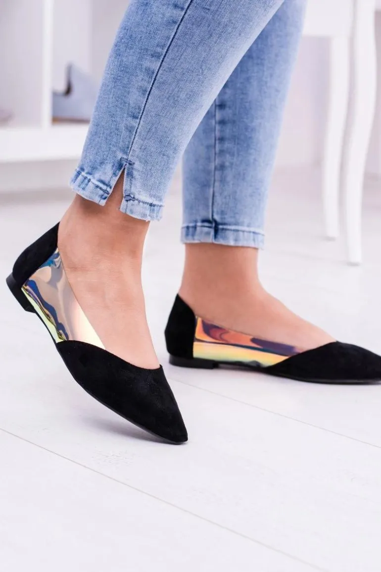 Lu Boo Czarne Transparentne Holograficzne Balerinki w Szpic Venessa