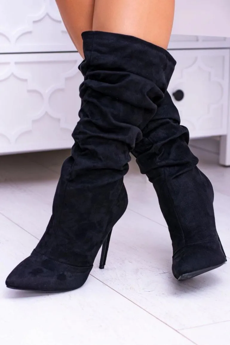 Lu Boo Czarne Wysokie Zamszowe Botki na Szpilce Bellisario