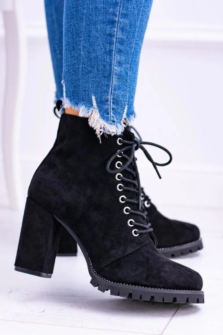 Lu Boo Czarne Zamszowe Botki na Słupku Cyrkonie Halsey