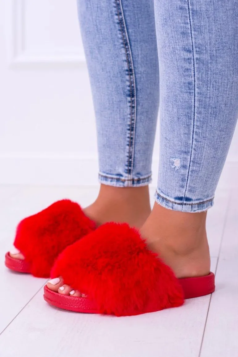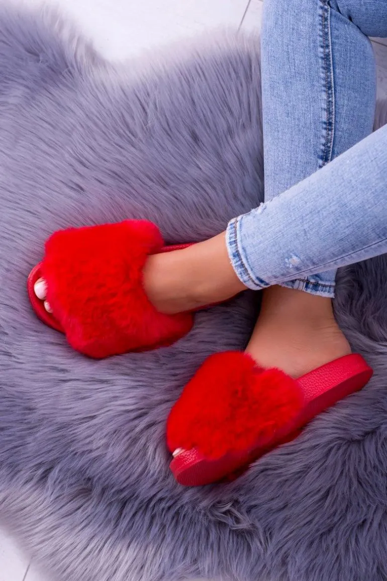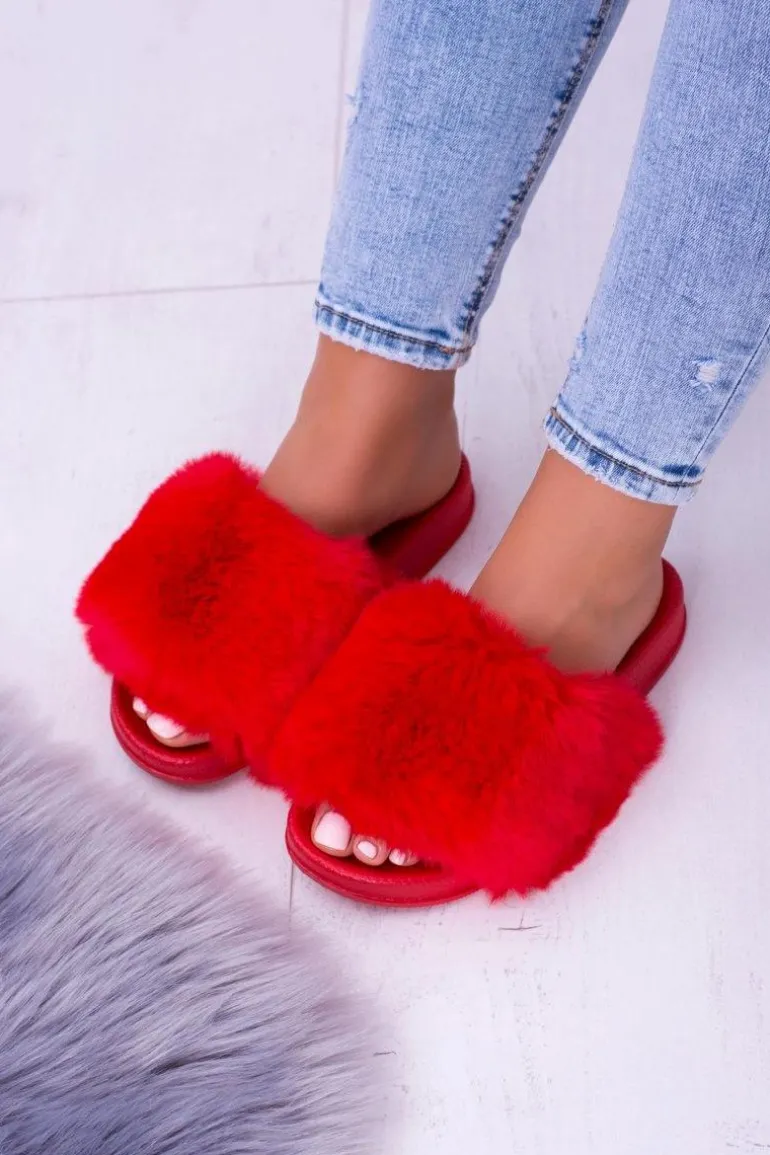 Lu Boo Czerwone Damskie Klapki Z Futerkiem FUR XXL