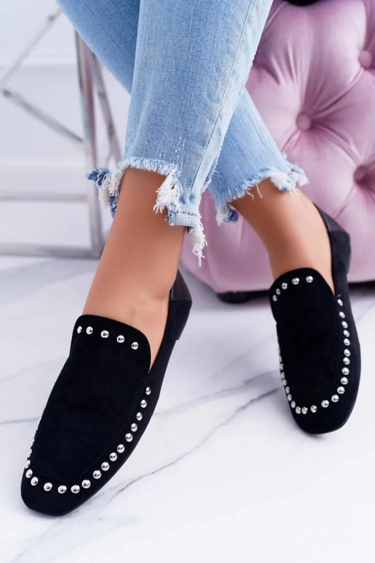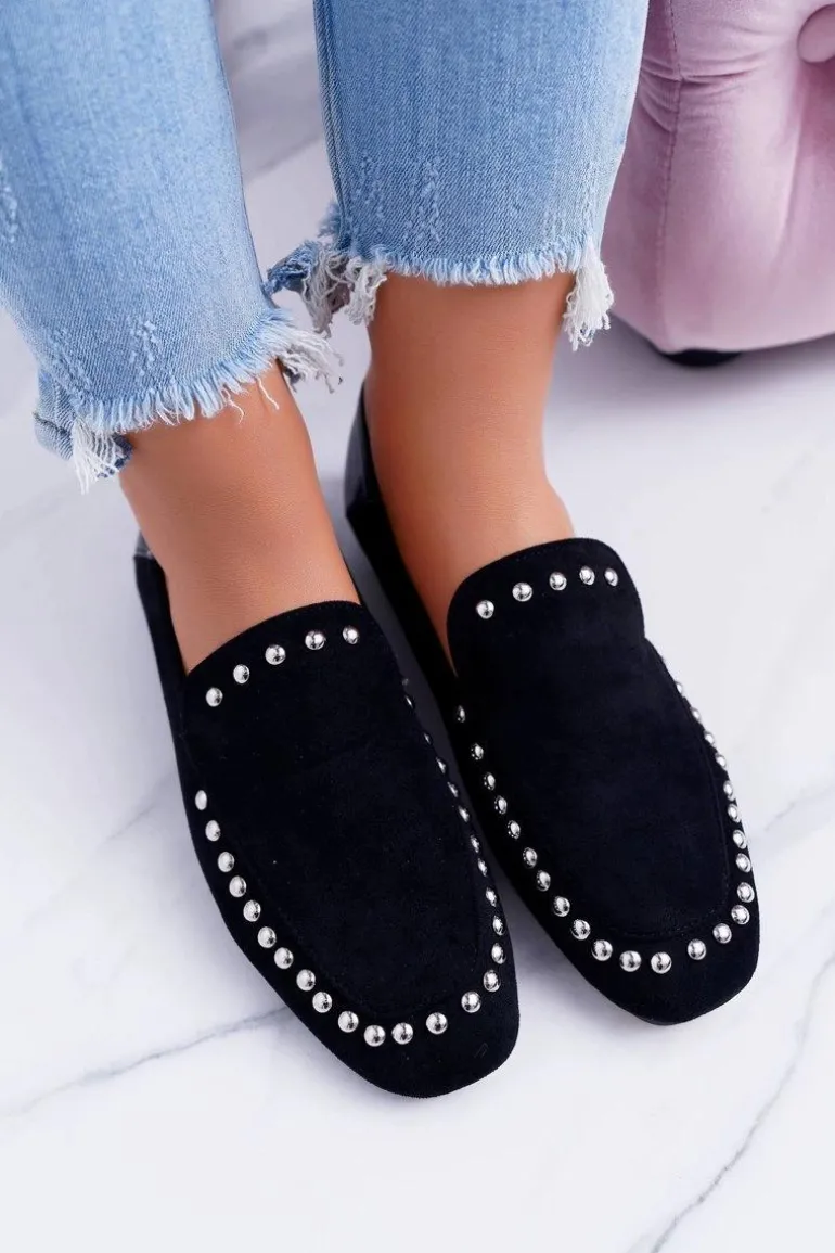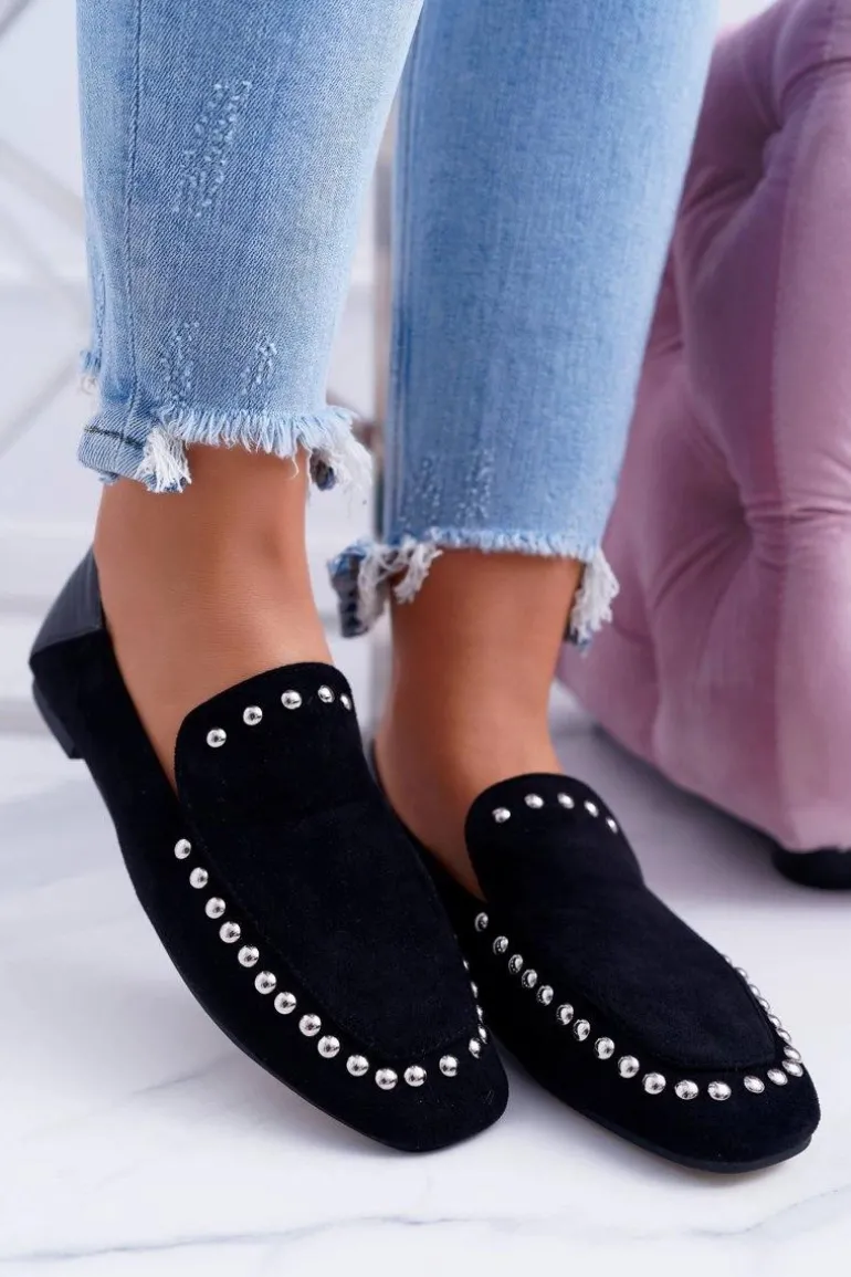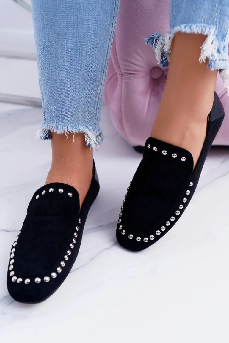 Lu Boo Damskie Czarne Lordsy Baleriny z Dżetami Planta