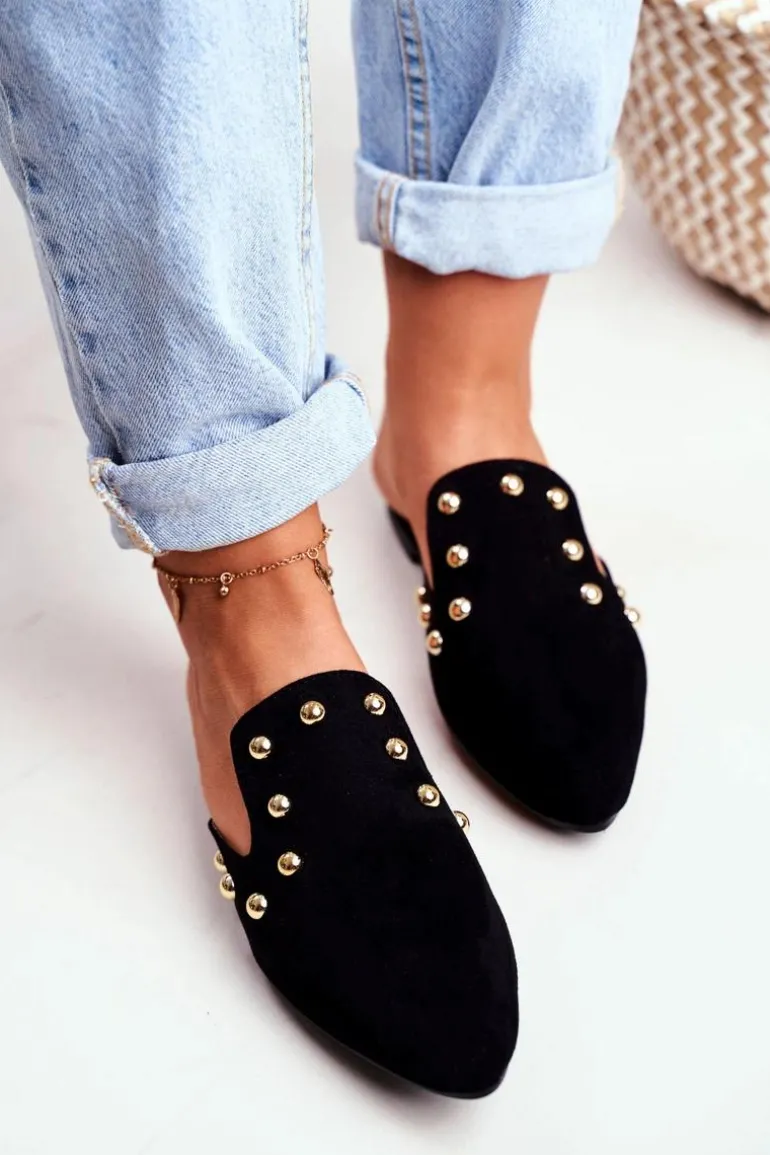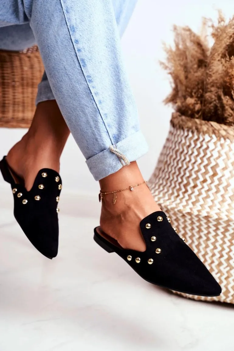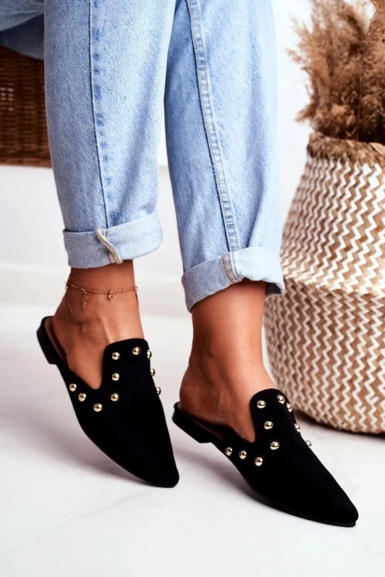 Lu Boo Damskie Klapki Czarne Zamszowe Seniorita